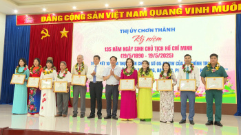 (CTTĐTBP) - Sáng 14/5/2025, Thị ủy Chơn Thành tổ chức kỷ niệm 135 năm ngày sinh Chủ tịch Hồ Chí Minh (19/5/1890 - 19/5/2025); tuyên dương các tập thể, cá nhân điển hình tiên tiến trong học tập và làm theo tư tưởng, đạo đức, phong cách Hồ Chí Minh.