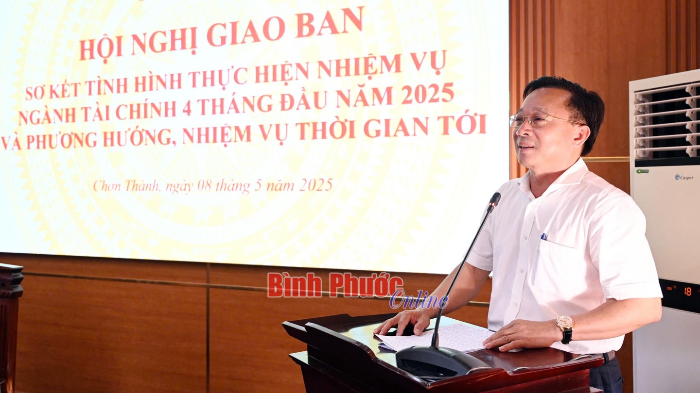 (CTTĐTBP) - Chiều 8/5, tại UBND thị xã Chơn Thành, Phó Chủ tịch UBND tỉnh Trần Văn Mi chủ trì hội nghị giao ban ngành tài chính nhằm sơ kết tình hình thực hiện nhiệm vụ của ngành 4 tháng đầu năm, triển khai phương hướng, nhiệm vụ thời gian tới. Lãnh đạo các sở, ban, ngành, đơn vị, địa phương trong tỉnh; lãnh đạo Chi Cục thuế khu vực XVI, Kho bạc Nhà nước khu vực XVI tham dự hội nghị.