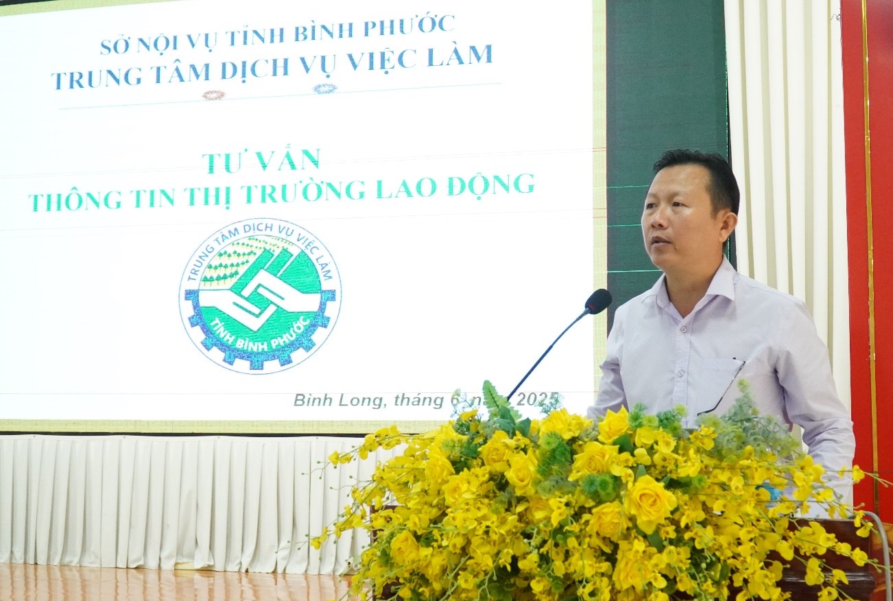 Đại diện Trung tâm Dịch vụ việc làm tỉnh Bình Phước thông tin về tình hình nhu cầu lao động trên địa bàn tỉnh