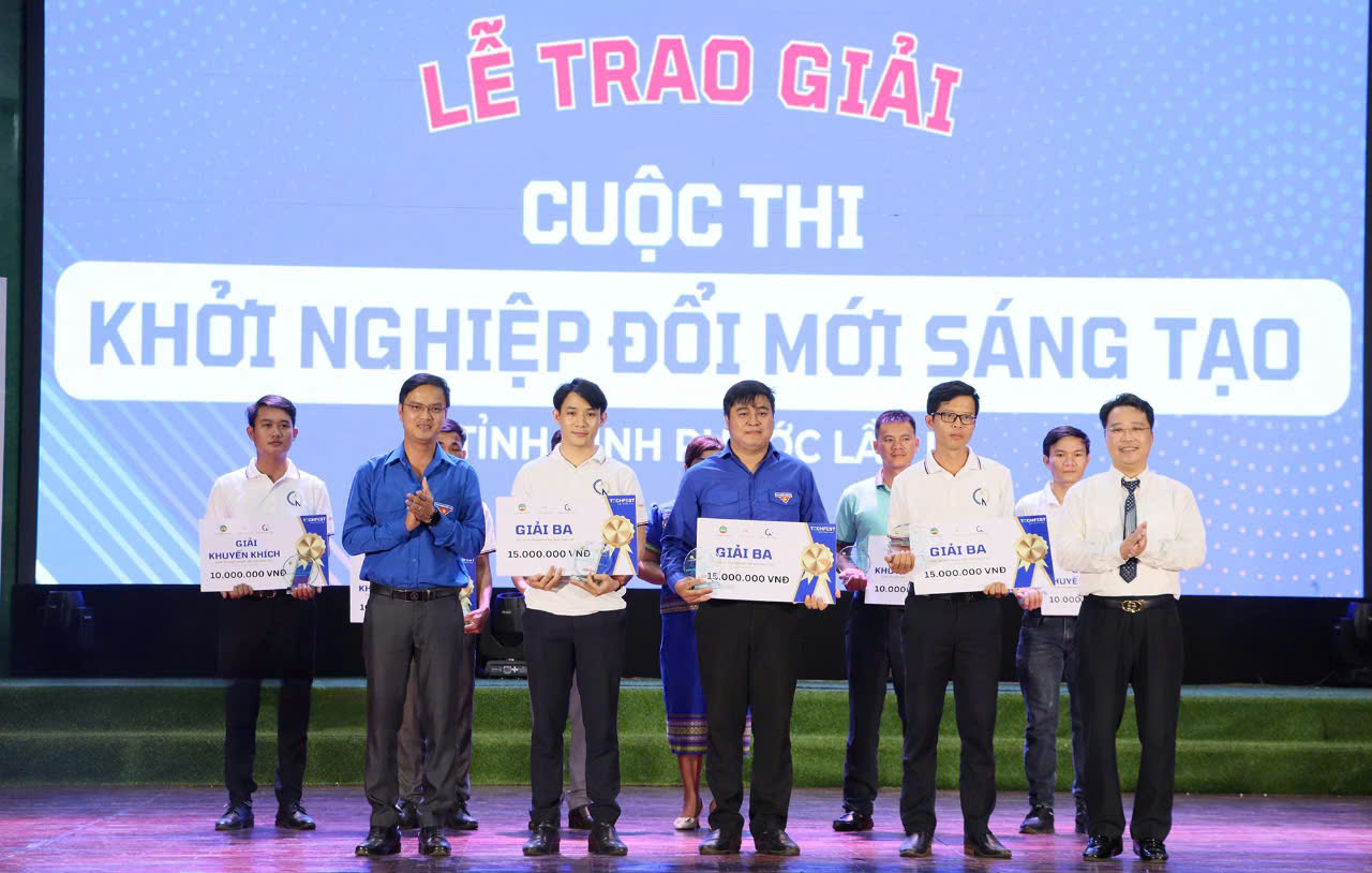 Ngoài ra, Ban tổ chức còn trao 04 giải khuyến khích cho các dự án: “Nông nghiệp 4.0” của anh Nguyễn Hữu Thành (huyện Đồng Phú); mô hình canh tác cây lá nhíp dưới tán điều nâng cao hiệu quả kinh tế của anh Đỗ Quốc Cường (TP. Đồng Xoài); mô hình kết hợp “Cà phê sạch – cá koi ao bùn” vì cuộc sống xanh của anh Trần Xuân Ngọc (huyện Bù Đốp); và mô hình xử lý rác thải hữu cơ bằng nuôi trùn quế tại hộ gia đình của anh Mai Thế Tâm (TP. Đồng Xoài).