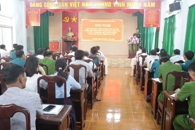 Hội nghị tập huấn được diễn ra trong 01 buổi với các nội dung: giới thiệu hướng dẫn quy trình thực hiện công tác tuyển chọn và gọi công dân nhập ngũ; hướng dẫn Nghị định số 37, quy trình, thủ tục xử lý vi phạm hành chính trong lĩnh vực quốc phòng; hướng dẫn tạm hoãn về sức khỏe; quy trình tổ chức sơ tuyển và khám sức khỏe...
