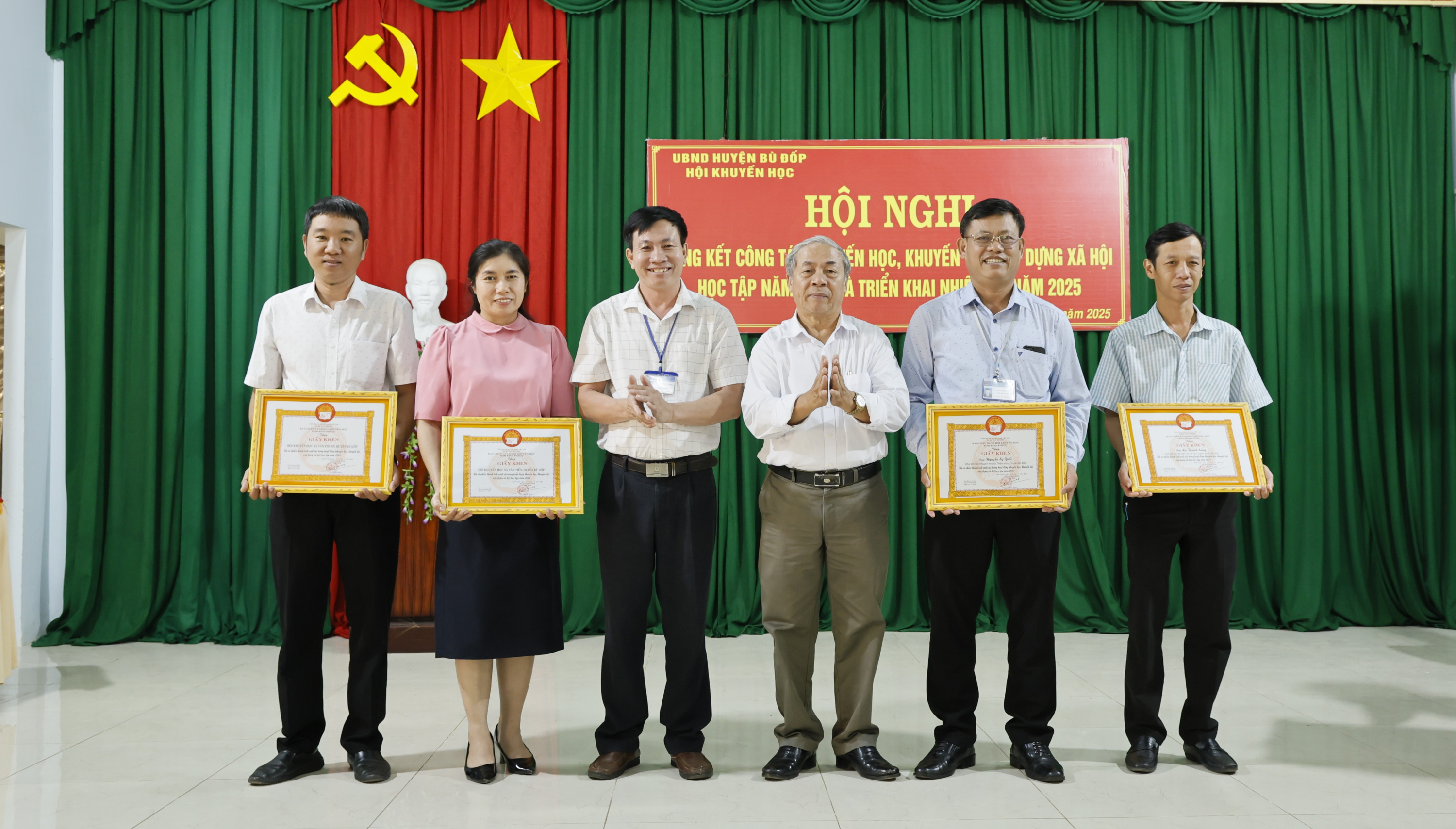 Năm 2024, các cấp hội khuyến học huyện Bù Đốp vận động, tổ chức trao tặng 1.749 xuất quà cho học sinh có hoàn cảnh khó khăn đón Tết Nguyên đán 2024, với số tiền 815 triệu đồng; trao 1.926 xuất học bổng, 4.409 xuất quà hỗ trợ cho học sinh có hoàn cảnh khó khăn được đến trường, với số tiền 2 tỷ 883 triệu đồng. Bên cạnh đó thực hiện tốt phong trào nuôi heo đất gây quỹ, đến nay được trên 100 triệu đồng. Hoạt động tiếp bước đến trường năm học 2024 - 2025, đã trao tặng xe đạp, thẻ bảo hiểm y tế, học bổng…với số tiền trên 630 triệu đồng; Ban khuyến học của Trung đoàn 717 duy trì dự án “Cán bộ, chiến sỹ nâng bước em đến trường” với số tiền 600 triệu đồng.