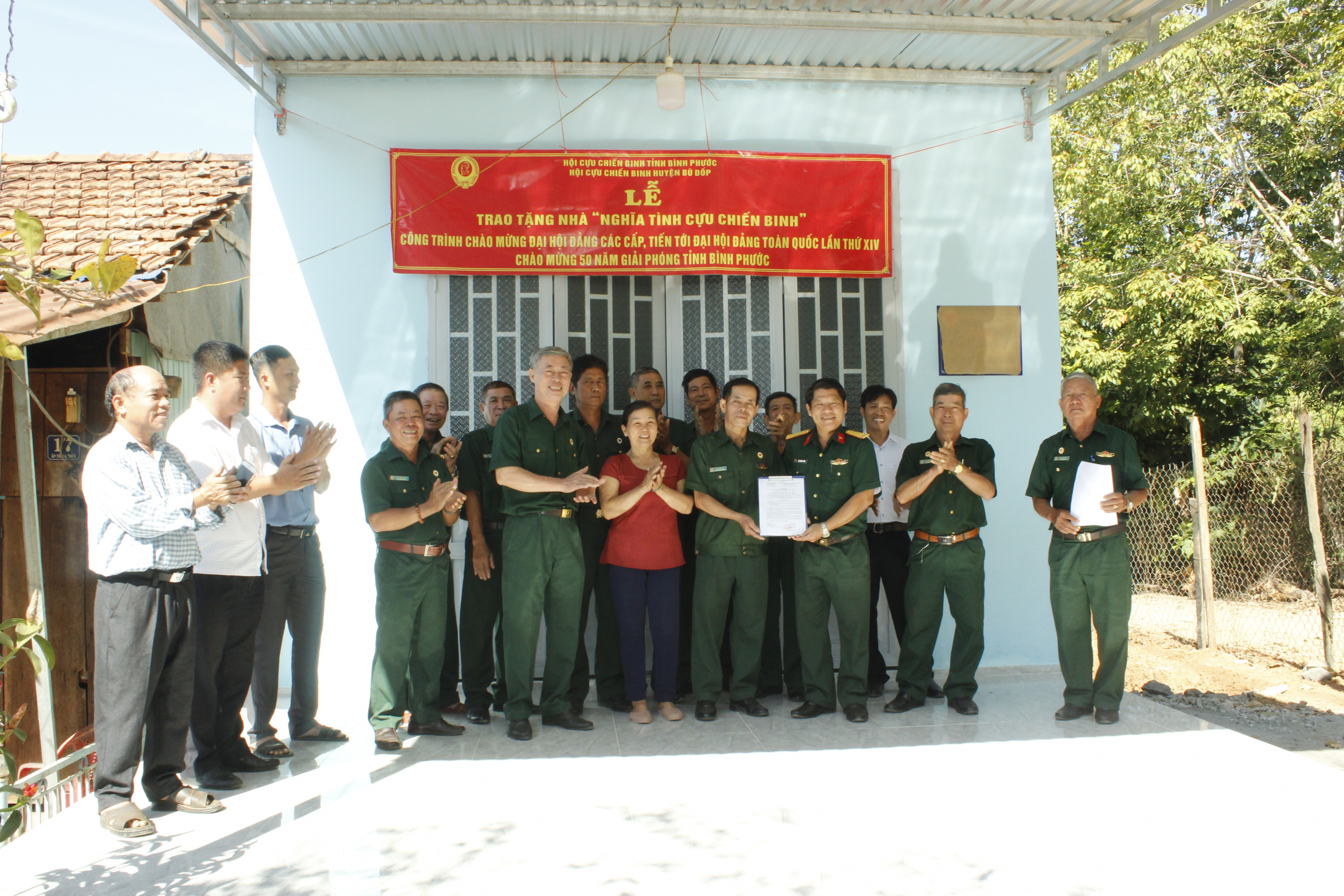 Ngôi nhà thứ nhất có diện tích 55 m2, với trị giá 100 triệu đồng, được trao bà Điểu Thị Re là hội viên cựu chiến binh người dân tộc thiểu số tại thôn 7, xã Thiện Hưng.
