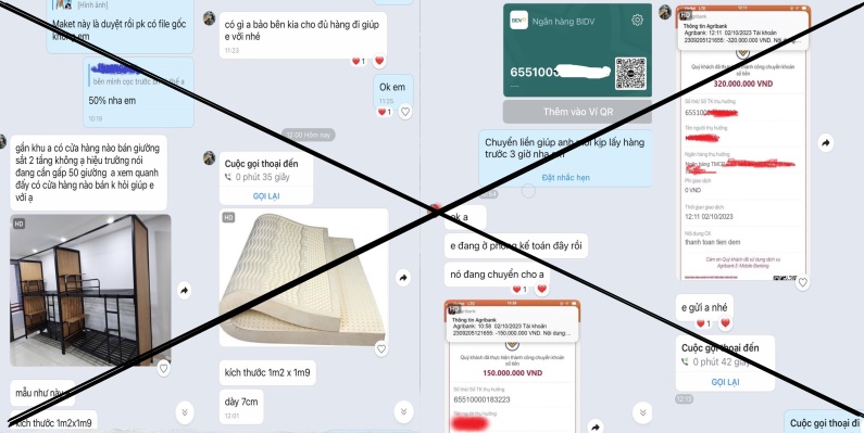 Để tạo lòng tin, đối tượng gửi tin nhắn Zalo kèm hình ảnh chụp màn hình giao dịch, thể hiện đã chuyển khoản 150 triệu đồng tiền cọc để làm pano và mua giường vào tài khoản của anh H.V.N. Tin tưởng đối tượng đã chuyển khoản thật, anh H.V.N đã liên hệ với cơ sở bán giường, được báo giá 175 triệu đồng và yêu cầu đặt cọc trước để giao hàng trong buổi chiều. Anh H.V.N đã chuyển khoản 40 triệu đồng vào tài khoản của cơ sở này.