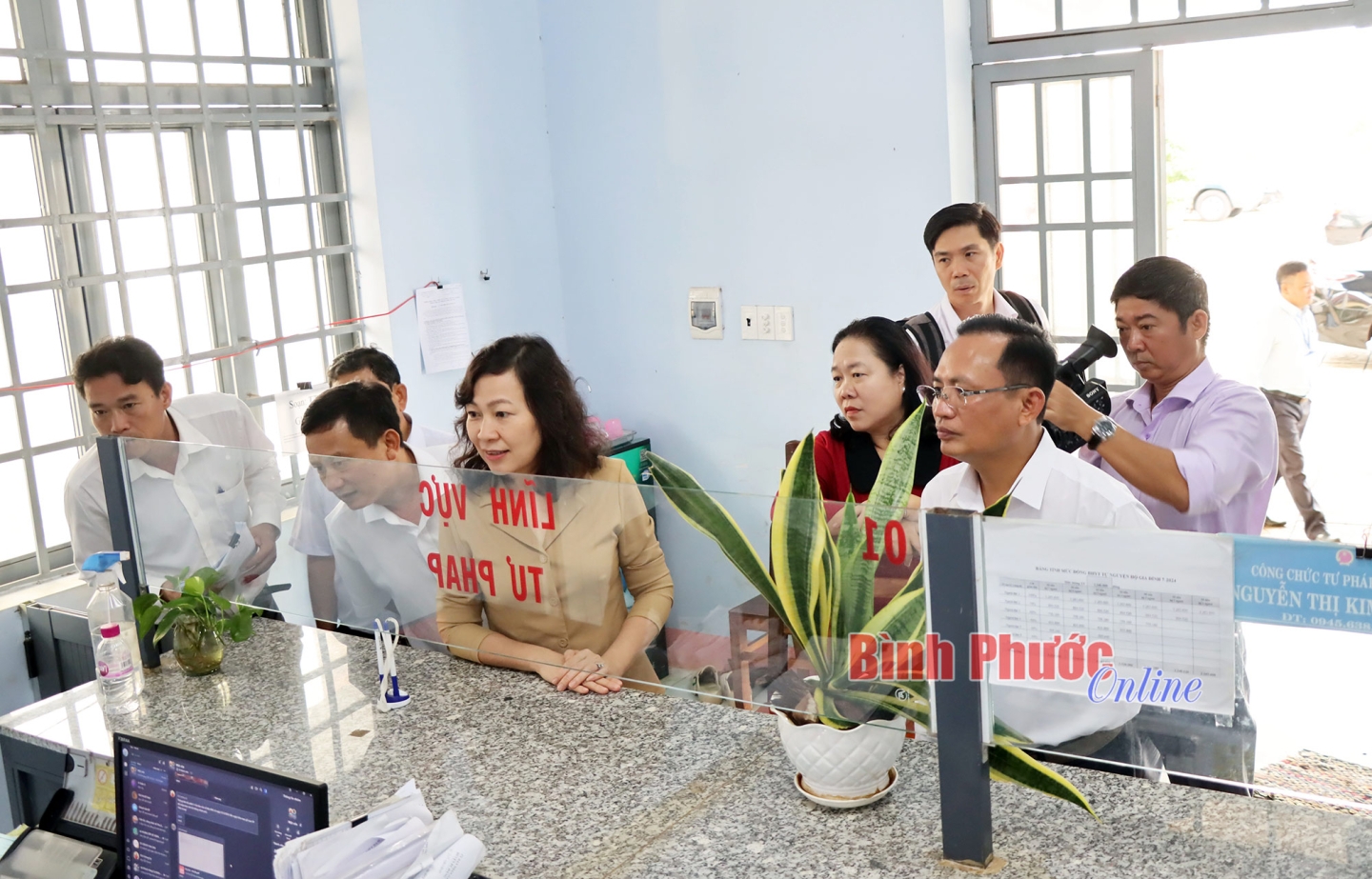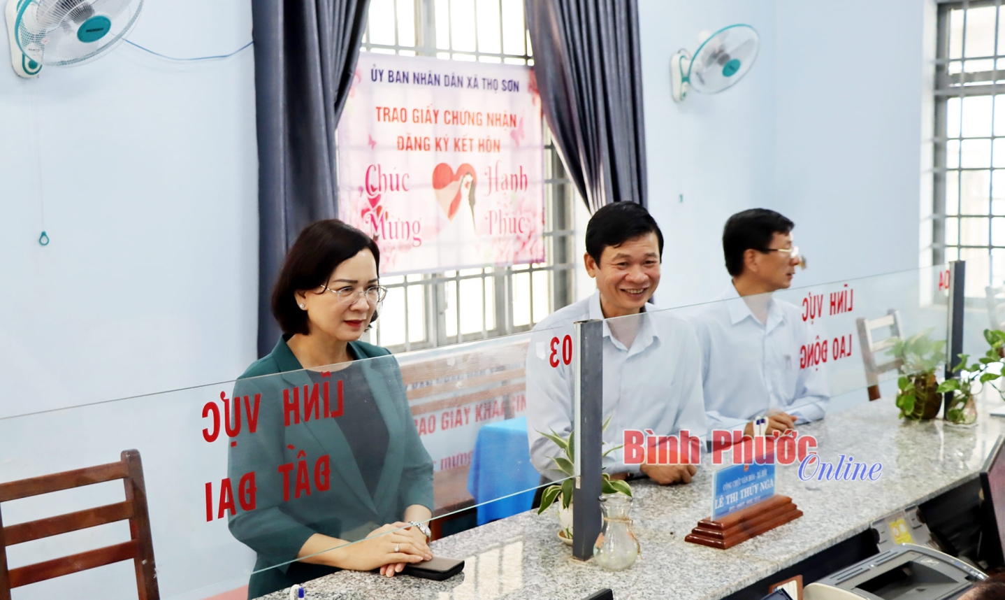 (CTTĐTBP) - Sáng 10/6, đoàn công tác của Tỉnh ủy, HĐND, UBND tỉnh do Phó Bí thư Thường trực Tỉnh ủy, Chủ tịch HĐND tỉnh Huỳnh Thị Hằng làm trưởng đoàn, đã kiểm tra thực tế tại các xã ở huyện Bù Đăng nhằm nắm bắt tình hình điều kiện làm việc sau khi thực hiện việc hợp nhất các đơn vị hành chính cấp xã. Cùng đi với đoàn có Ủy viên Ban Thường vụ Tỉnh ủy, Phó Chủ tịch UBND tỉnh Trần Tuyết Minh.