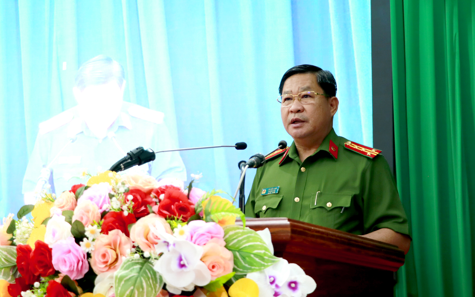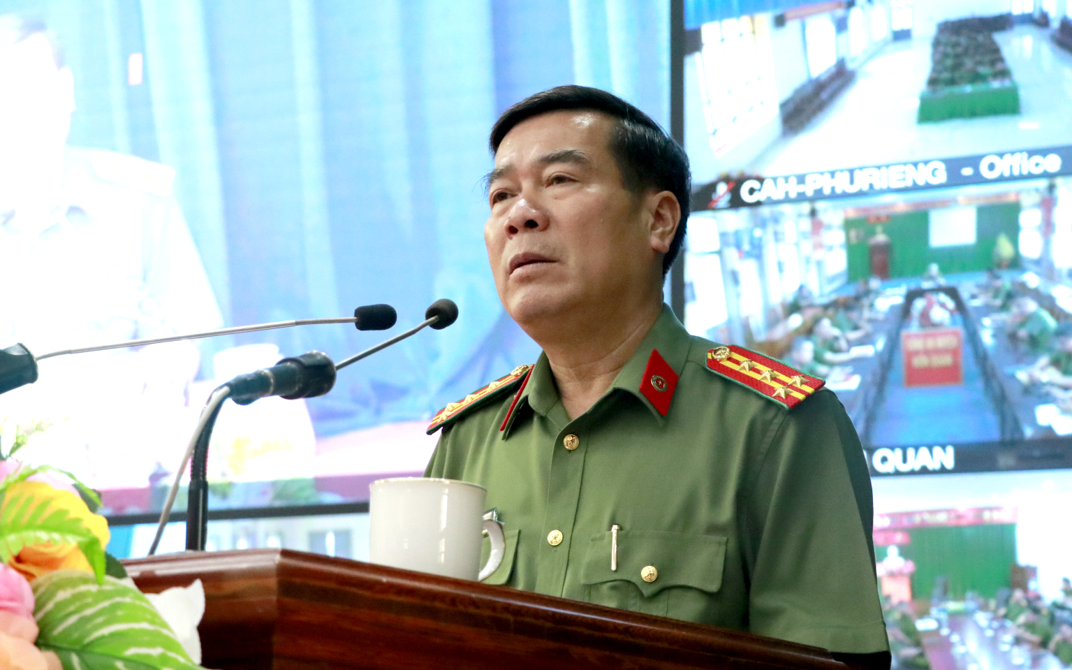 Đại tá Lâm Văn Long - Phó Giám đốc Công an tỉnh quán triệt những nhiệm vụ trọng tâm trong đợt sinh hoạt