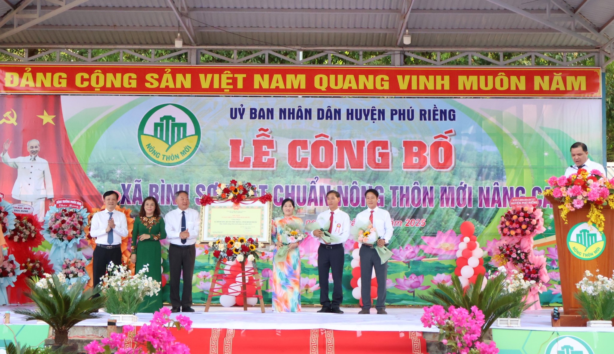 Lãnh đạo tỉnh, huyện Phú Riềng trao bằng công nhận xã Bình Sơn đạt chuẩn NTM nâng cao năm 2023