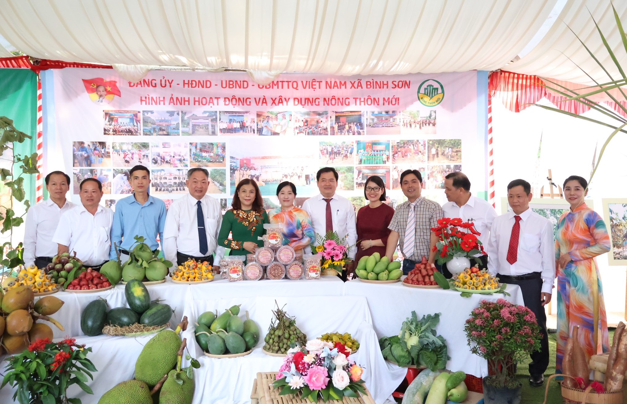 Các đại biểu chụp hình lưu niệm tại khu trưng bày sản phẩm nông nghiệp tiêu biểu của địa phương