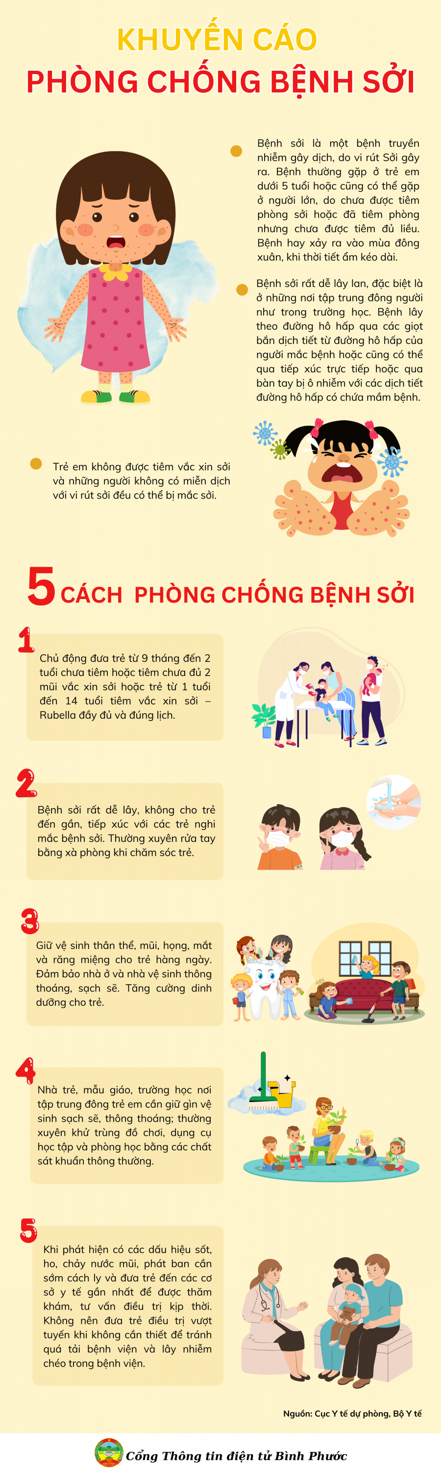 Tăng cường thông tin, truyền thông, tuyên truyền vận động người dân, nhất là vùng sâu, vùng xa, biên giới, hải đảo, vùng đồng bào dân tộc thiểu số để chủ động thực hiện các biện pháp phòng, chống bệnh Sởi và đưa trẻ đi tiêm chủng đầy đủ, đúng lịch theo hướng dẫn của ngành y tế.