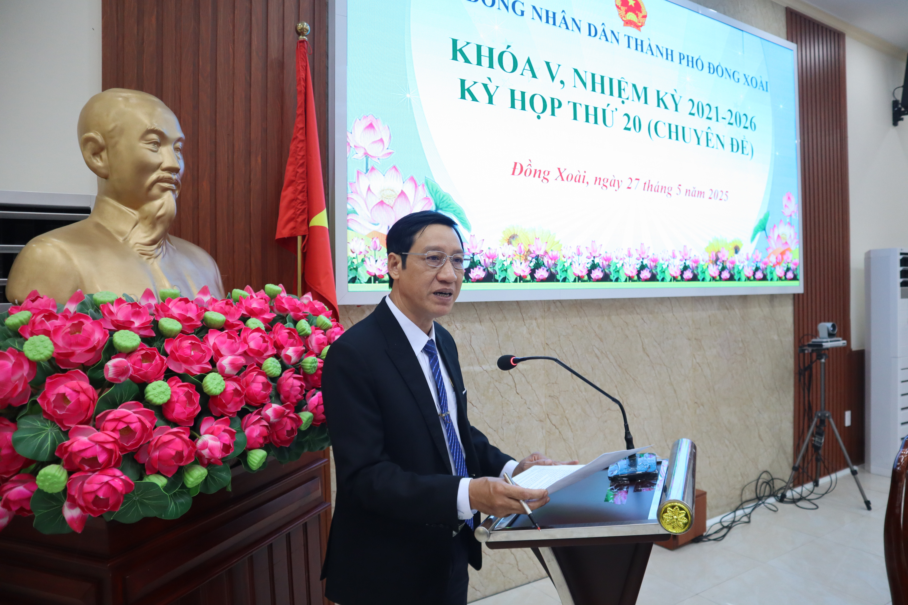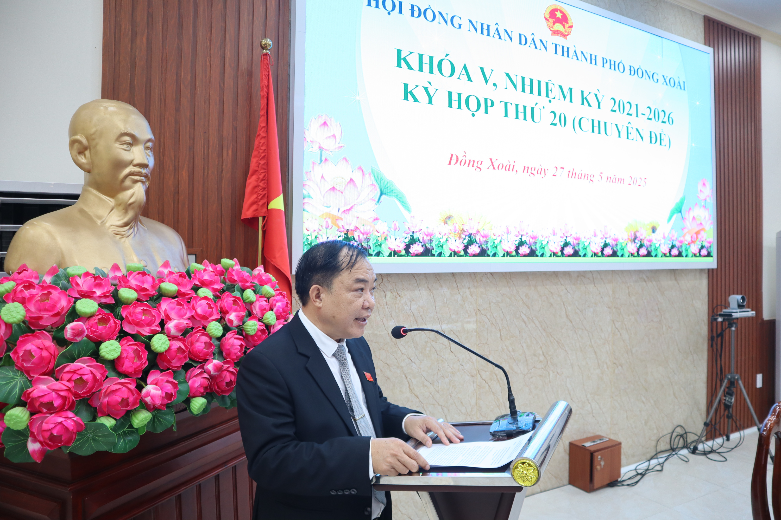 (CTTĐTBP) - Sáng nay 27/5/2025, HĐND thành phố Đồng Xoài đã tổ chức kỳ họp thứ 20 (chuyên đề) khóa V, nhiệm kỳ 2021 - 2026.