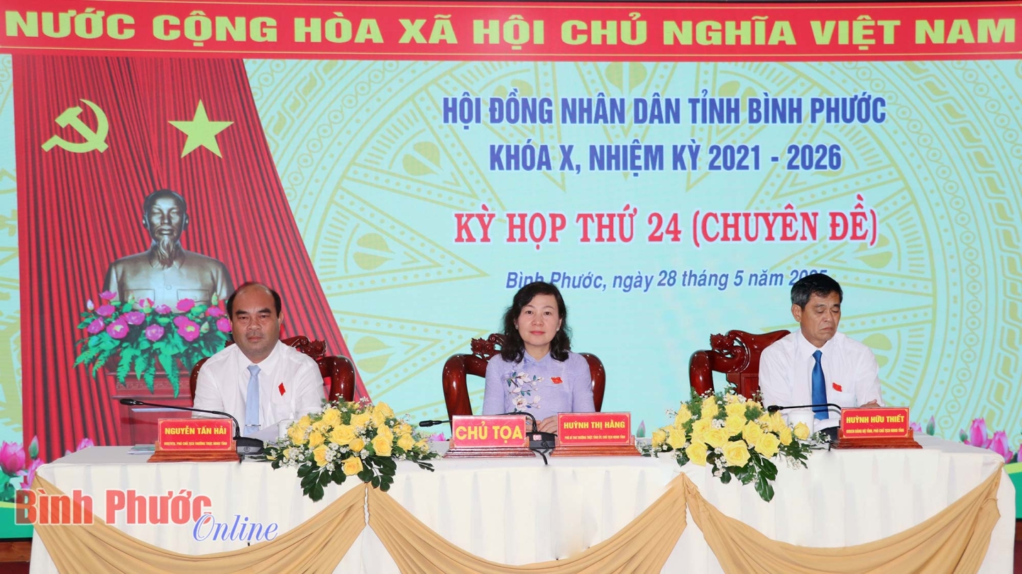 (CTTĐTBP) - Tại kỳ họp thứ 24 (chuyên đề) HĐND tỉnh Bình Phước khóa X, nhiệm kỳ 2021-2026 diễn ra sáng 28/5, HĐND tỉnh đã thông qua 4 nghị quyết với sự đồng thuận, nhất trí của 100% đại biểu HĐND tỉnh dự.