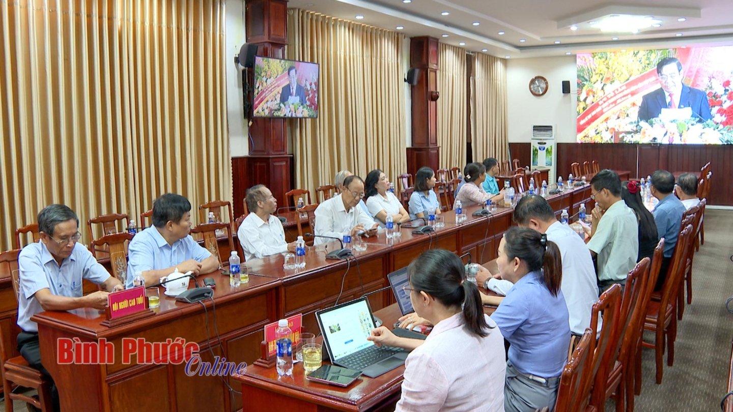 Tại điểm cầu UBND tỉnh Bình Phước, dự lễ có đại diện lãnh đạo Sở Nội vụ, Ban Tuyên giáo và Dân vận Tỉnh ủy, Hội Người cao tuổi tỉnh.
