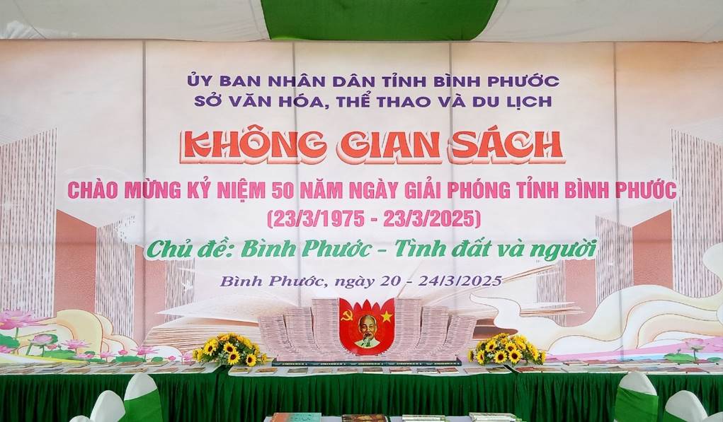 Không gian sách trưng bày chào mừng kỷ niệm 50 năm Ngày giải phóng tỉnh Bình Phước được diễn ra từ ngày 20 - 24/3, tại Quảng trường 23/3./.