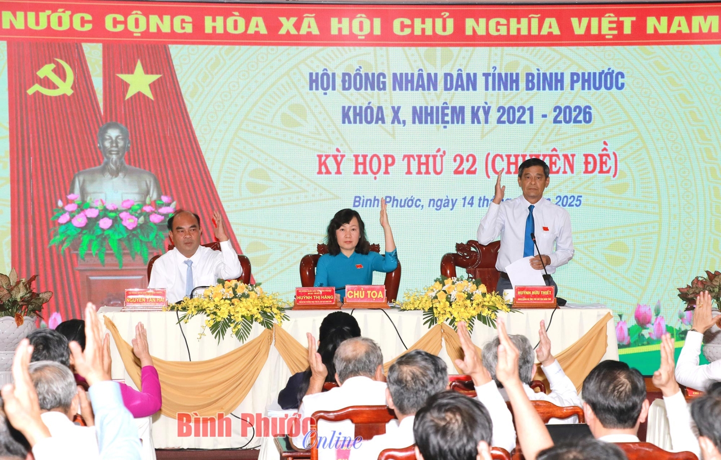 Trên cơ sở xem xét, thảo luận các tờ trình và dự thảo nghị quyết do UBND tỉnh trình, HĐND tỉnh đã đồng thuận, nhất trí thông qua 2 nghị quyết, gồm: Nghị quyết cho ý kiến về tác động của việc thực hiện dự án thành phần 1: Đầu tư xây dựng đường cao tốc Bắc - Nam phía Tây đoạn Gia Nghĩa (Đắk Nông) - Chơn Thành (Bình Phước) theo phương thức đối tác công tư (thuộc dự án cao tốc Gia Nghĩa - Chơn Thành); Nghị quyết thông qua bổ sung kế hoạch vốn đầu tư công nguồn ngân sách trung ương năm 2025.