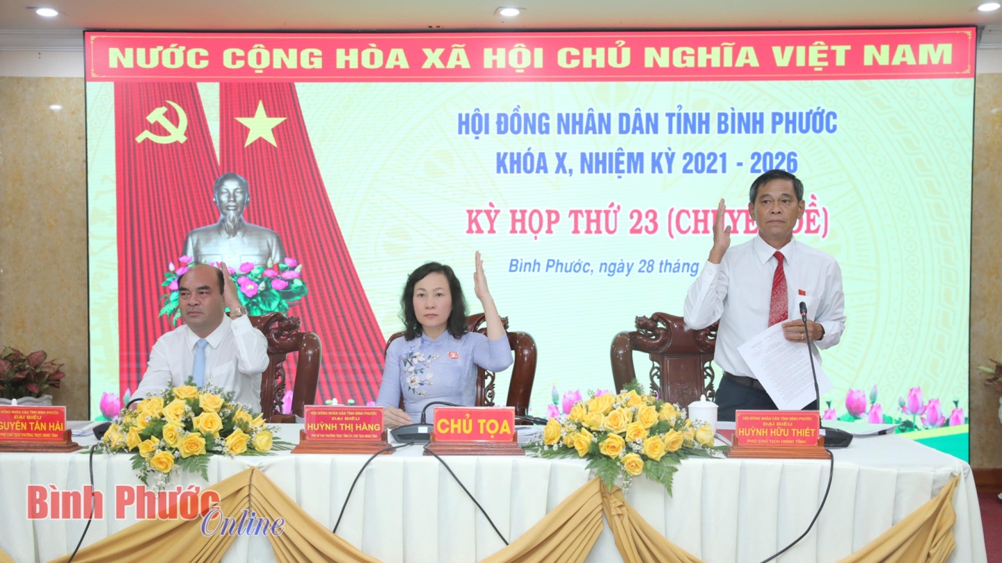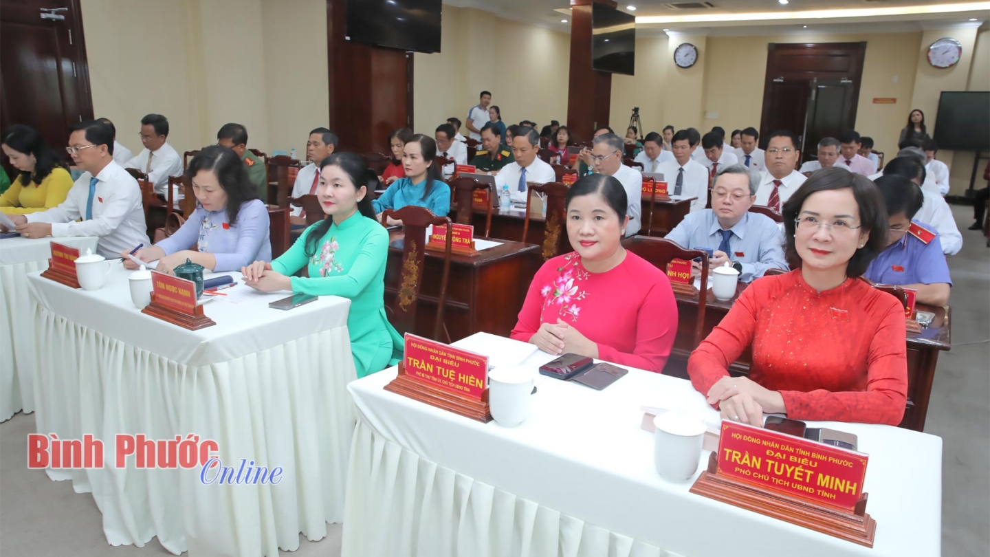Trên cơ sở xem xét các tờ trình và dự thảo nghị quyết do UBND tỉnh trình, HĐND tỉnh đã đồng thuận, nhất trí thông qua các nghị quyết: Cho ý kiến mức tỷ lệ (%) để tính đơn giá thuê đất, mức tỷ lệ (%) để tính đơn giá thuê đất đối với đất xây dựng công trình ngầm, mức tỷ lệ (%) để tính đơn giá thuê đất đối với đất có mặt nước trên địa bàn tỉnh Bình Phước; thông qua chủ trương thống nhất phương án giao UBND tỉnh Đồng Nai là cơ quan chủ quản thực hiện dự án đầu tư xây dựng cầu Mã Đà; tán thành chủ trương sắp xếp đơn vị hành chính cấp tỉnh, cấp xã của tỉnh Bình Phước.