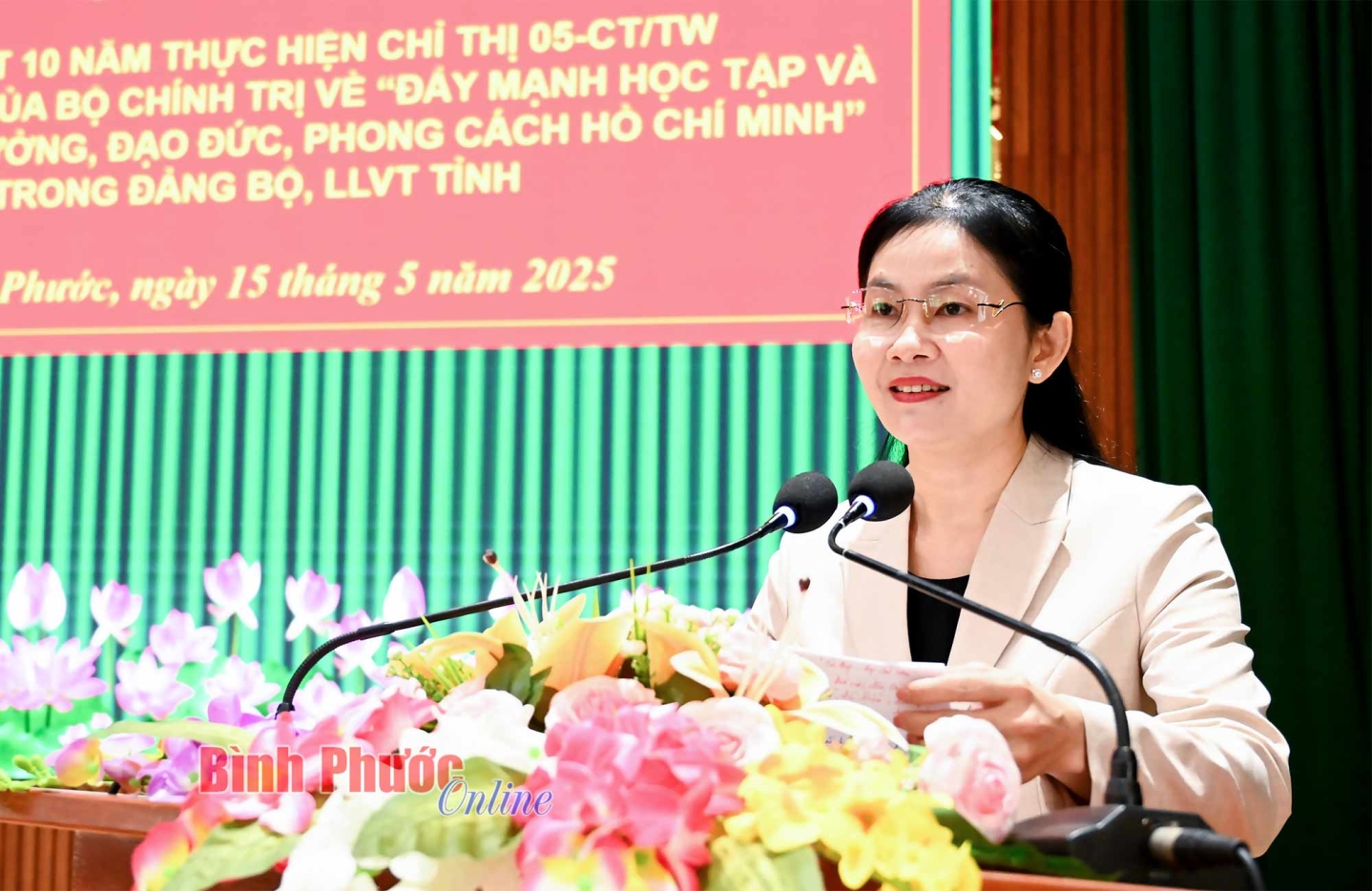Nhấn mạnh ý nghĩa, tầm quan trọng của việc học tập và làm theo tư tưởng, đạo đức, phong cách Hồ Chí Minh, Bí thư Tỉnh ủy Tôn Ngọc Hạnh, Bí thư Đảng ủy Quân sự tỉnh yêu cầu trong thời gian tới, Đảng ủy Quân sự tỉnh, cấp ủy, chỉ huy các cấp trong LLVT tỉnh, các cơ quan, đơn vị tiếp tục tuyên truyền việc học tập và lan tỏa những giá trị của tư tưởng, đạo đức, phong cách Hồ Chí Minh; lan tỏa rộng rãi những mô hình điển hình để việc học tập và làm theo Bác thực sự thực chất, mang ý nghĩa giáo dục sâu sắc.