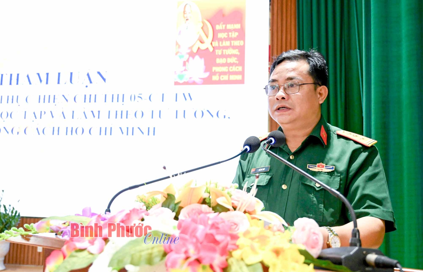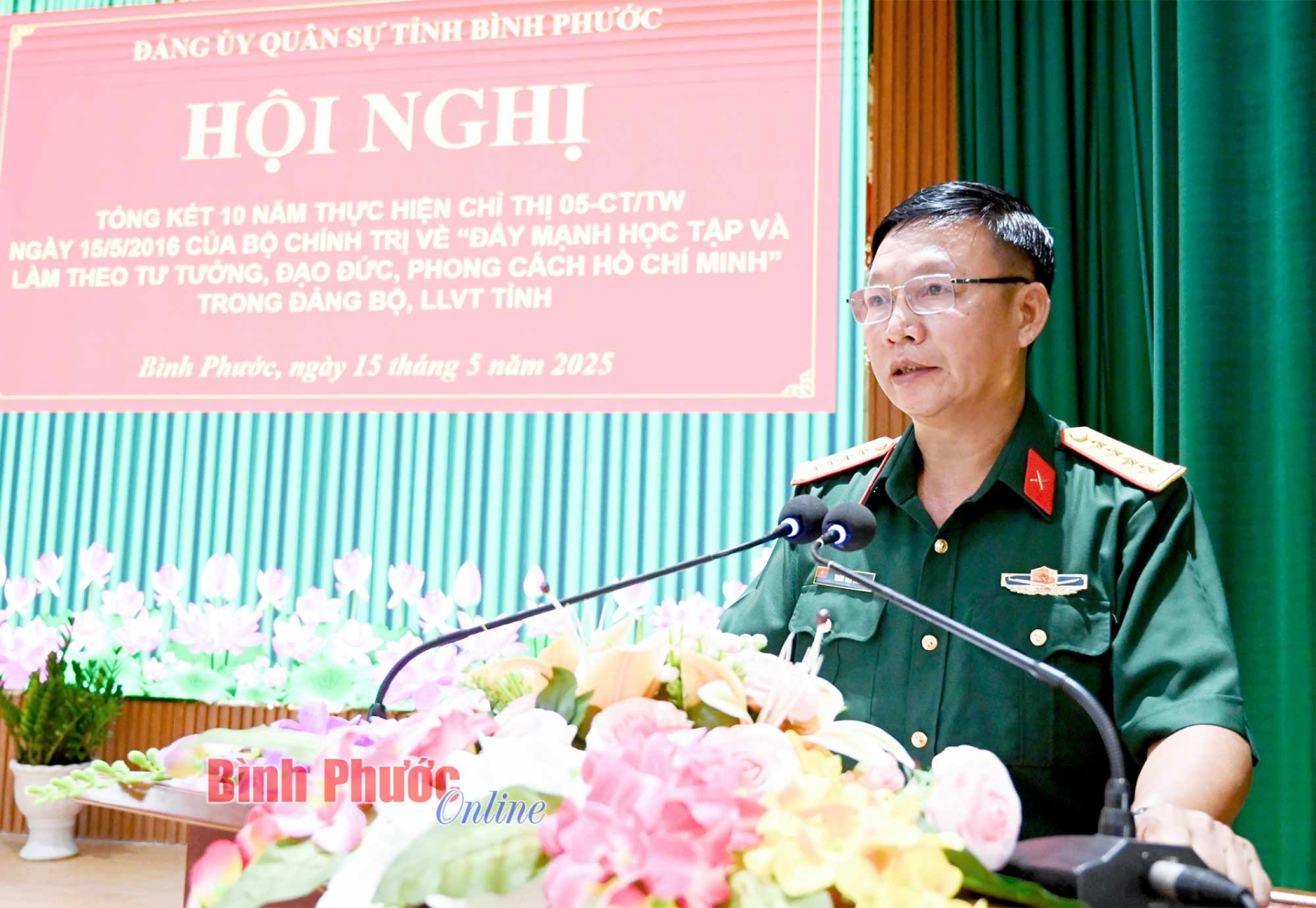 (CTTĐTBP) - Sáng 15/5, Đảng ủy Quân sự tỉnh tổ chức hội nghị tổng kết 10 năm thực hiện Chỉ thị 05-CT/TW ngày 15/5/2016 của Bộ Chính trị về đẩy mạnh học tập và làm theo tư tưởng, đạo đức, phong cách Hồ Chí Minh trong Đảng bộ, lực lượng vũ trang (LLVT) tỉnh.
