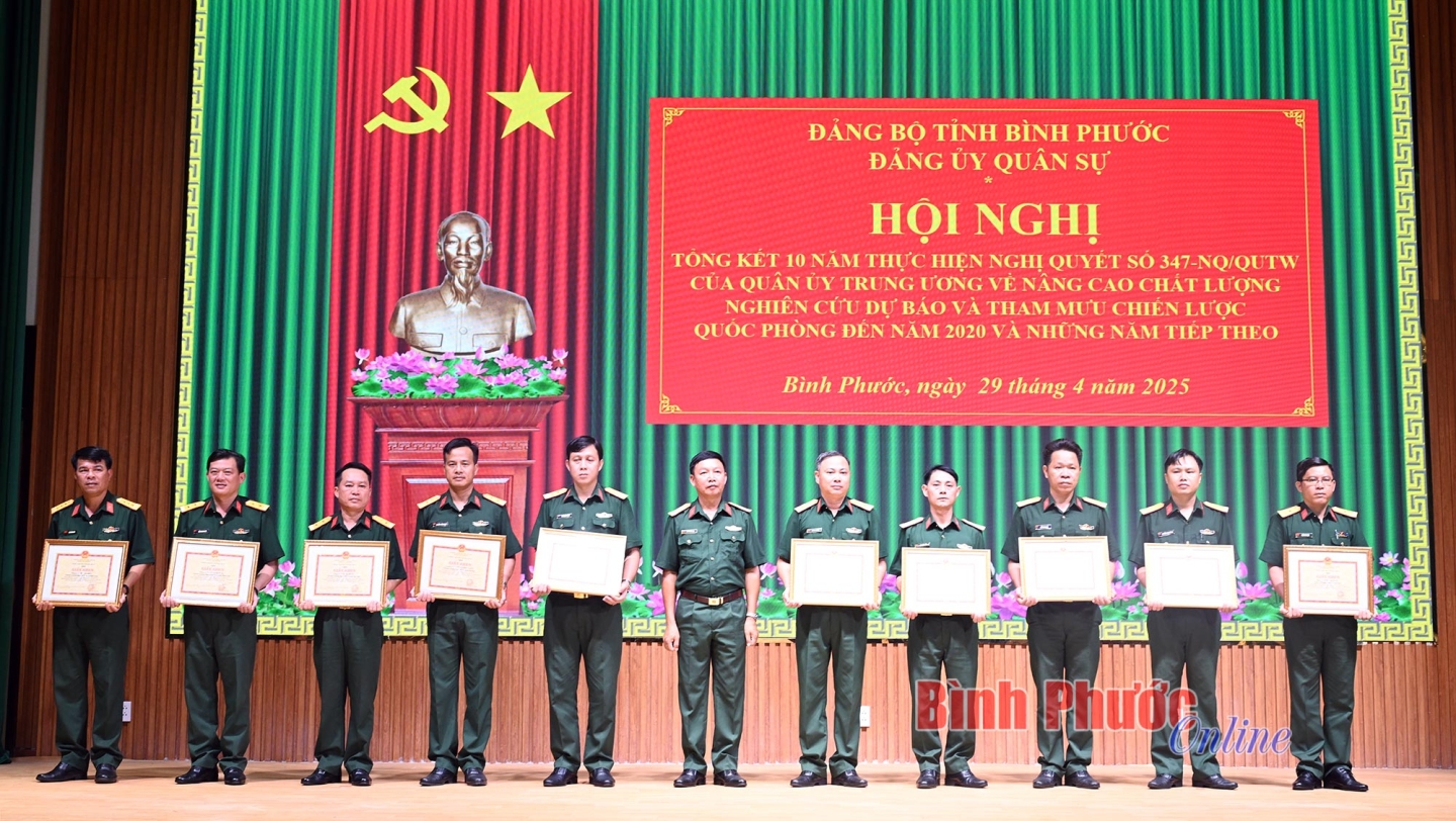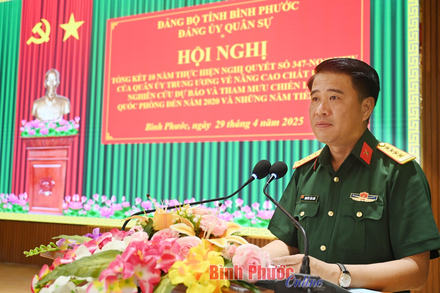 Qua 10 năm triển khai, việc cụ thể hóa nội dung, tinh thần Nghị quyết 347 được Đảng ủy Quân sự tỉnh thực hiện đạt kết quả tốt; đã kịp thời tham mưu Tỉnh ủy, UBND tỉnh xử lý các tình huống, không để bị động bất ngờ, góp phần giữ vững an ninh chính trị, trật tự an toàn xã hội, ổn định tuyến biên giới trên địa bàn tỉnh. Trong công tác kiện toàn và nâng cao năng lực cán bộ làm công tác nghiên cứu, dự báo, tham mưu chiến lược quốc phòng, đã cử 421 lượt cán bộ tham gia đào tạo tại các học viện, nhà trường quân đội; 85,5% cán bộ thường trực và dân quân tự vệ có trình độ cao đẳng, đại học trở lên. Về đẩy mạnh hoạt động sáng kiến, đã có 27 sáng kiến, cải tiến được công nhận, áp dụng hiệu quả trong huấn luyện, diễn tập.