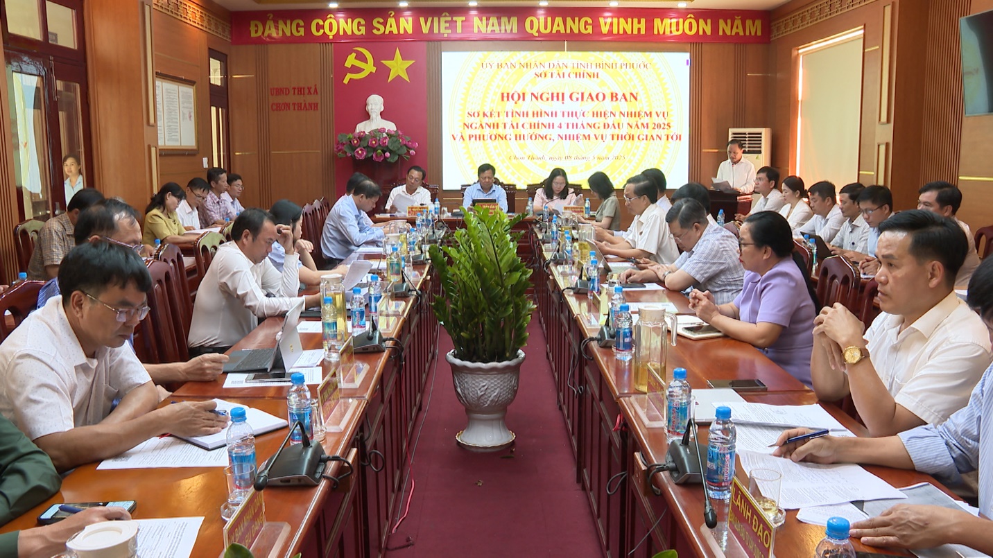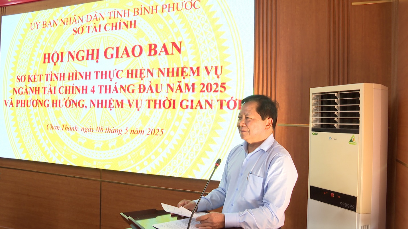 (CTTĐTBP) - Chiều 08/5/2025, tại thị xã Chơn Thành, Sở Tài chính đã tổ chức hội nghị giao ban sơ kết tình hình thực hiện nhiệm vụ ngành tài chính tỉnh 04 tháng đầu năm 2025 và phương hướng, nhiệm vụ trong thời gian tới. Phó Chủ tịch UBND tỉnh Trần Văn Mi, cùng lãnh đạo các sở, ban, ngành, UBND các huyện, thị xã, thành phố tham dư hội nghị.