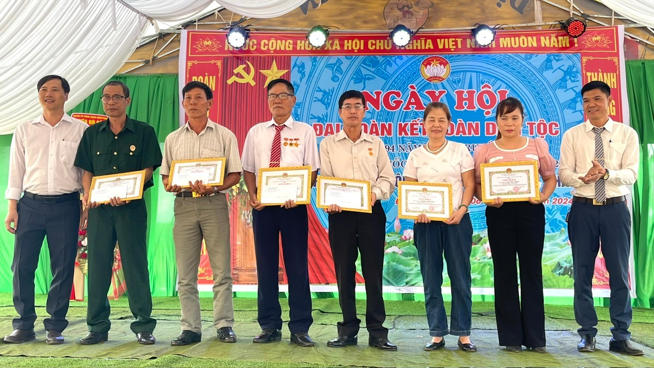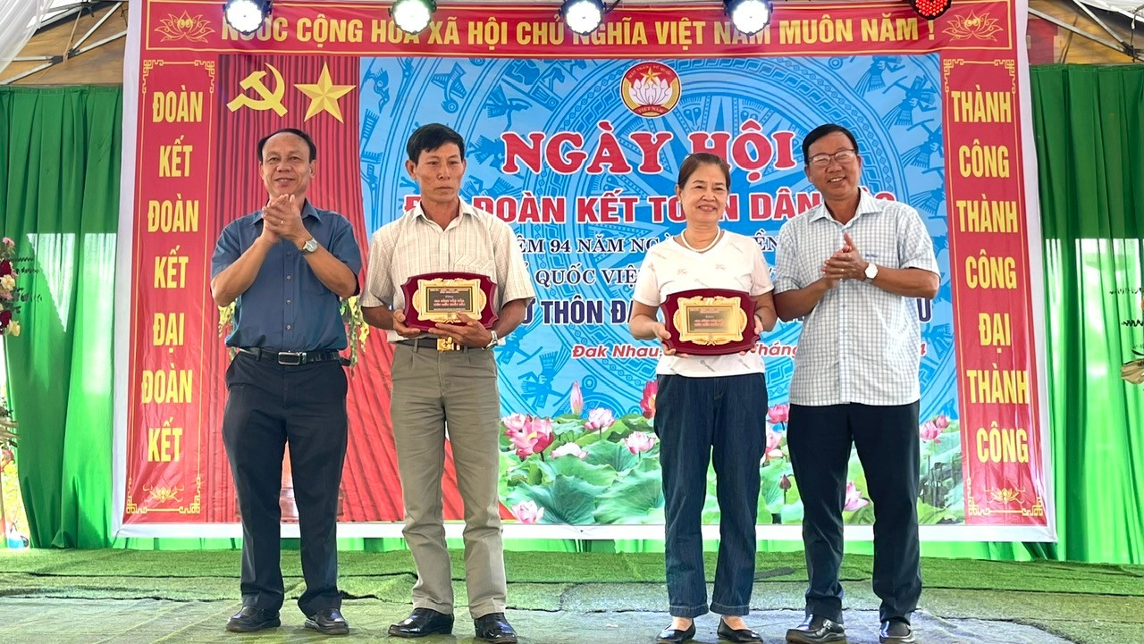 Lãnh đạo Đảng uỷ, UBND xã Đak Nhau tặng khen thưởng cho tập thể và cá nhân có những đóng góp tiêu biểu trong phong trào toàn dân đoàn kết xây dựng đời sống văn hoá ở khu dân cư