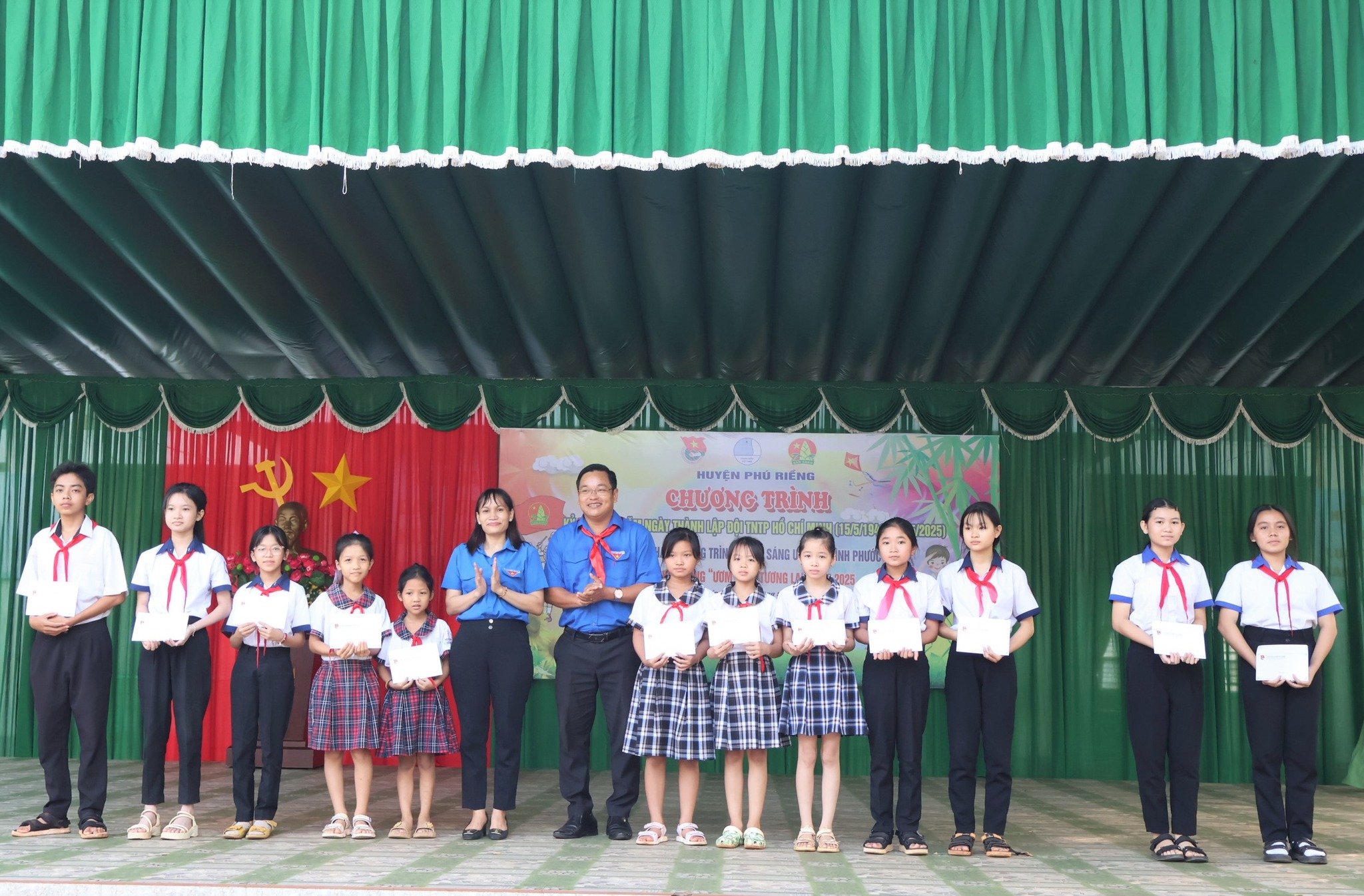 Dịp này, Tỉnh đoàn Bình Phước đã trao tặng công trình thanh niên “Ươm mầm tương lai” là 50 suất học bổng, trị giá 50 triệu đồng cho các em học sinh vượt khó học giỏi. 25 giáo viên tổng phụ trách đội tiêu biểu trên địa bàn huyện cũng được tuyên dương, khen thưởng./.