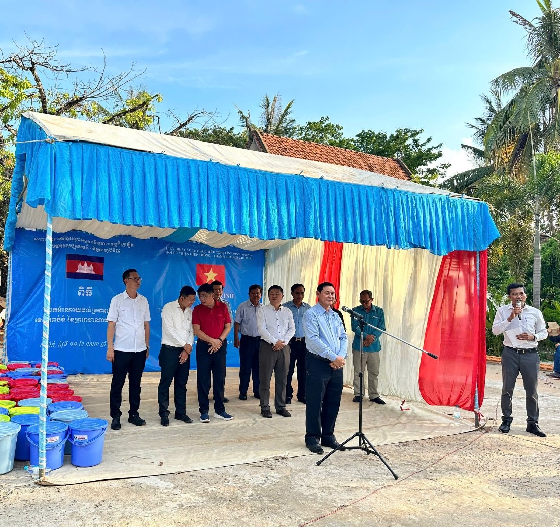 Buổi lễ trao quà diễn ra trang trọng và ấm cúng với sự hiện diện của ông Nhuek Bankheng - Phó Tỉnh trưởng tỉnh Kampong Thom; ông Bùi Quốc Khánh - Phó Giám đốc Sở Ngoại vụ, Phó Chủ tịch Liên hiệp Các tổ chức hữu nghị tỉnh Bình Phước và ông Nguyễn Hữu Lâm - Chủ tịch Hội Từ thiện Hiệp Thông TP.HCM.