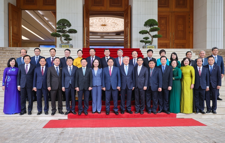 Các thành viên Chính phủ chụp ảnh lưu niệm với các đại biểu dự phiên họp - Ảnh: VGP/Nhật Bắc