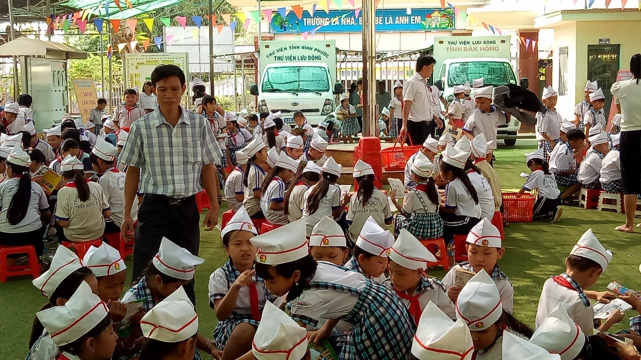 Thư viện lưu động tỉnh Bình Phước và Thư viện lưu động tỉnh Đắk Nông phục vụ tại Trường tiểu học Thiện Hưng C