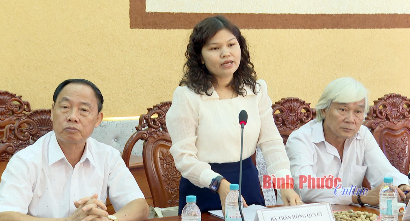 Bà Trần Hồng Quyết, Tổng Thư ký Liên hiệp các hội Khoa học và Kỹ thuật tỉnh Bình Phước báo cáo sơ bộ tình hình hoạt động của Liên hiệp hội tại buổi làm việc