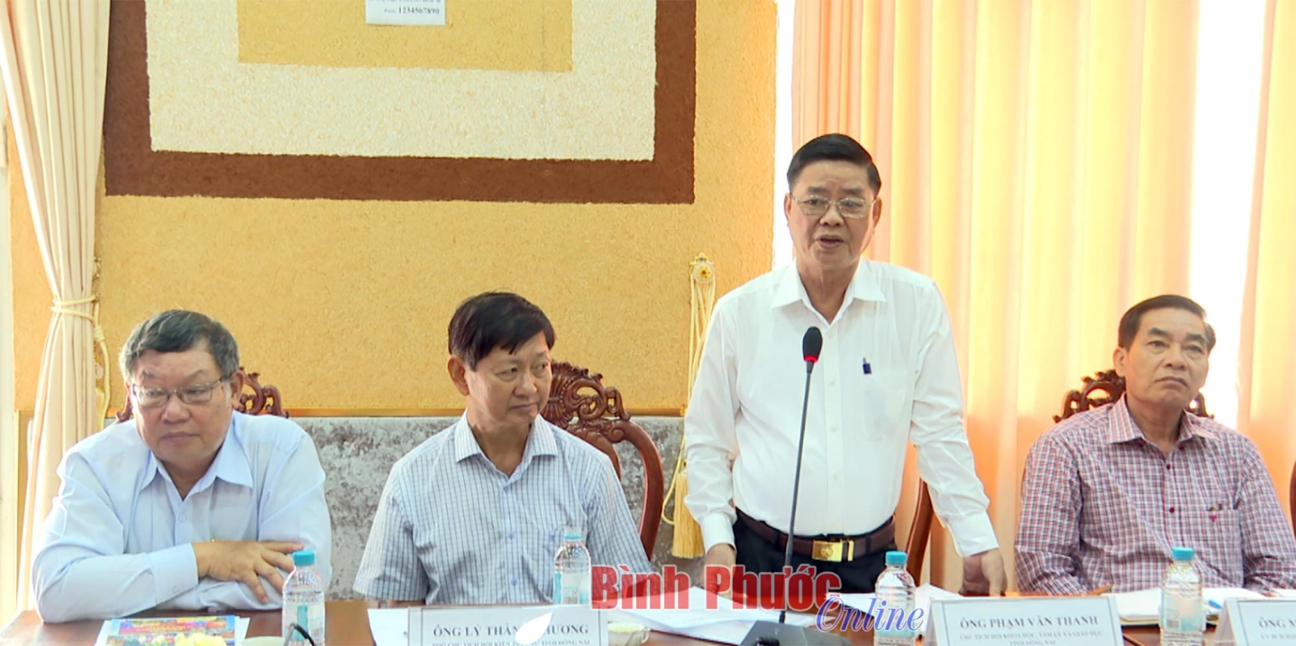 Ông Phạm Văn Thanh, Chủ tịch Hội Khoa học, Tâm lý và Giáo dục, Liên hiệp các hội Khoa học và Kỹ thuật tỉnh Đồng Nai phát biểu tại buổi làm việc
