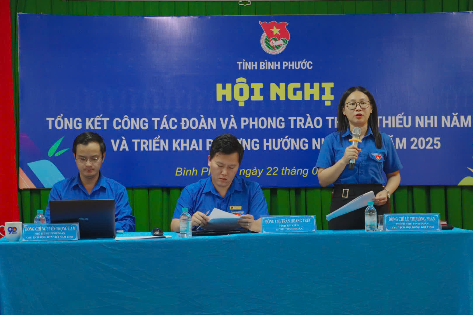 Phát biểu tại hội nghị, Phó Trưởng Ban Dân vận Tỉnh ủy Nguyễn Thị Loan đã ghi nhận và biểu dương những kết quả nổi bật trong công tác Đoàn và phong trào thanh thiếu nhi năm 2024. Đồng chí nhấn mạnh, trong thời gian tới, cần quan tâm đến đội ngũ cán bộ đoàn để sâu sát với cơ sở, quan tâm đến đội ngũ cán bộ Đoàn, các cấp bộ Đoàn cần tiếp tục đồng hành cùng thanh niên, đổi mới sáng tạo trong các hoạt động và đẩy mạnh các phong trào hành động cách mạng. Tập trung chỉ đạo công tác tuyên truyền, đẩy mạnh việc thông tin về công tác tổ chức Đại hội Đảng các cấp, đồng thời triển khai các công trình, phần việc và diễn đàn chào mừng Đại hội Đại biểu Đảng bộ tỉnh Bình Phước lần thứ XII, nhiệm kỳ 2025 - 2030. Kịp thời báo cáo và đề xuất với cấp ủy những khó khăn, vướng mắc trong công tác Đoàn và phong trào thanh thiếu nhi, từ đó đề ra các giải pháp khắc phục phù hợp. Chủ động tham mưu, đề xuất các giải pháp và nhiệm vụ cụ thể để thực hiện Nghị quyết 57-NQ/TW về đột phá phát triển khoa học, công nghệ, đổi mới sáng tạo và chuyển đổi số quốc gia, góp phần thúc đẩy sự phát triển bền vững của tỉnh nhà. Đồng thời, cần tập trung triển khai các chủ trương, chính sách mới của Đảng, Nhà nước, đặc biệt là việc đổi mới, tinh gọn bộ máy chính trị, nâng cao hiệu quả công tác Đoàn, thu hút sự tham gia của đông đảo đoàn viên, thanh niên.