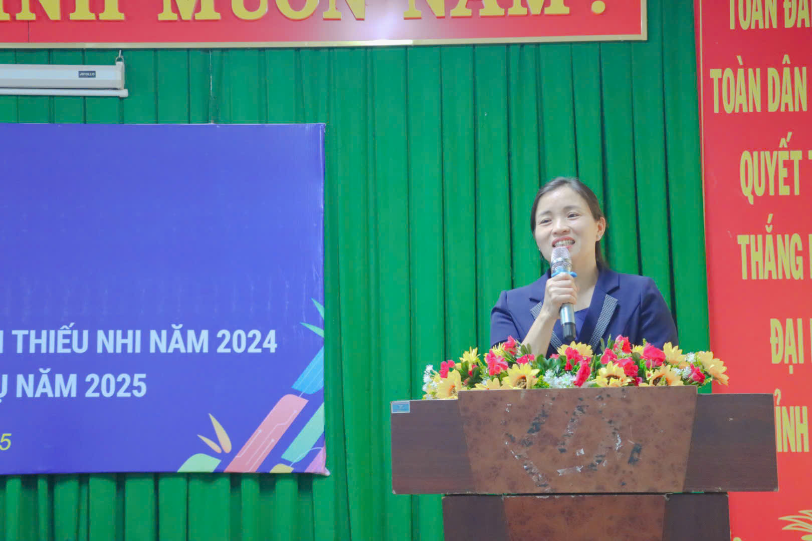 Phó Bí thư Tỉnh Đoàn, Chủ tịch Hội đồng Đội tỉnh Lê Thị Hồng Phấn phát biểu điều hành hội nghị