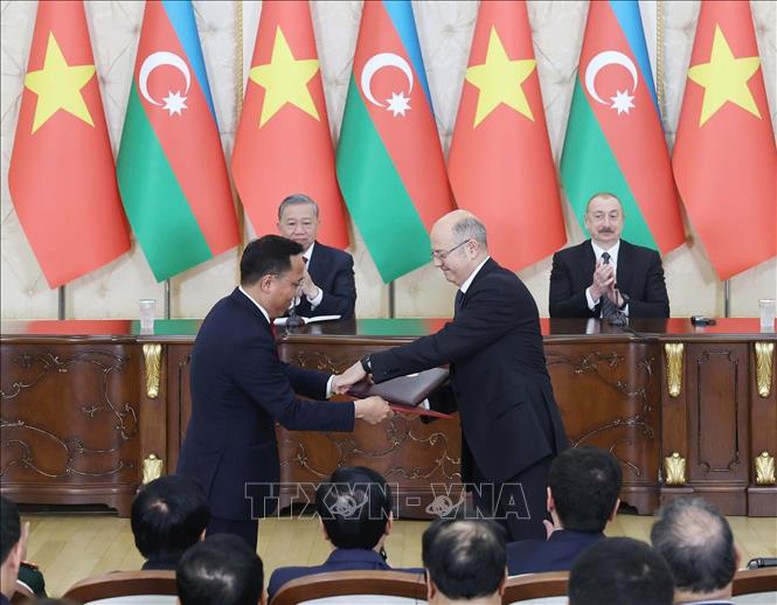 Các văn kiện gồm có: Bộ Công thương Việt Nam và Bộ Năng lượng Azerbaijan trao đổi bản ghi nhớ về hợp tác trong lĩnh vực năng lượng; Bộ Quốc phòng Việt Nam và Bộ Quốc phòng Azerbaijan trao Ý định thư hợp tác giữa hai bộ; Bộ Tư pháp Việt Nam và Bộ Tư pháp Azerbaijan trao đổi Chương trình hợp tác giai đoạn 2025-2027; Tập đoàn Công nghiệp-Năng lượng Quốc gia Việt Nam và Bộ Kinh tế Azerbaijan trao đổi Bản ghi nhớ trong lĩnh vực thăm dò và khai thác, dịch vụ kỹ thuật dầu khí và đào tạo; Công ty cổ phần Lọc hóa dầu Bình Sơn và Bộ Kinh tế Azerbaijan trao đổi Bản ghi nhớ về cung cấp dầu thô dài hạn cho Nhà máy lọc dầu Dung Quất giữa Công ty cổ phần Lọc hóa dầu Bình Sơn, Tổng công ty Dầu Việt Nam và SOCAR Trading Singapore; Bộ Khoa học và Công nghệ Việt Nam và Bộ Phát triển số và Giao thông Azerbaijan trao đổi Bản ghi nhớ về hợp tác giữa hai bộ; Bộ Văn hóa, Thể thao và Du lịch Việt Nam và Bộ Văn hóa Azerbaijan trao đổi Bản ghi nhớ về hợp tác giữa hai bộ.