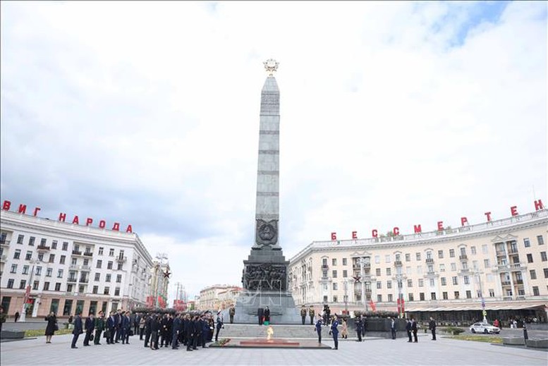 *Trước đó, chiều cùng ngày, Tổng Bí thư Tô Lâm cùng Đoàn đại biểu cấp cao Việt Nam đã tới thăm và dâng hoa tại Tượng đài Chiến thắng ở thủ đô Minsk, Belarus. Đây là nơi người dân Belarus cũng như những du khách từ khắp thế giới đến thăm và tưởng nhớ những người đã hy sinh trong cuộc Chiến tranh Vệ quốc vĩ đại.