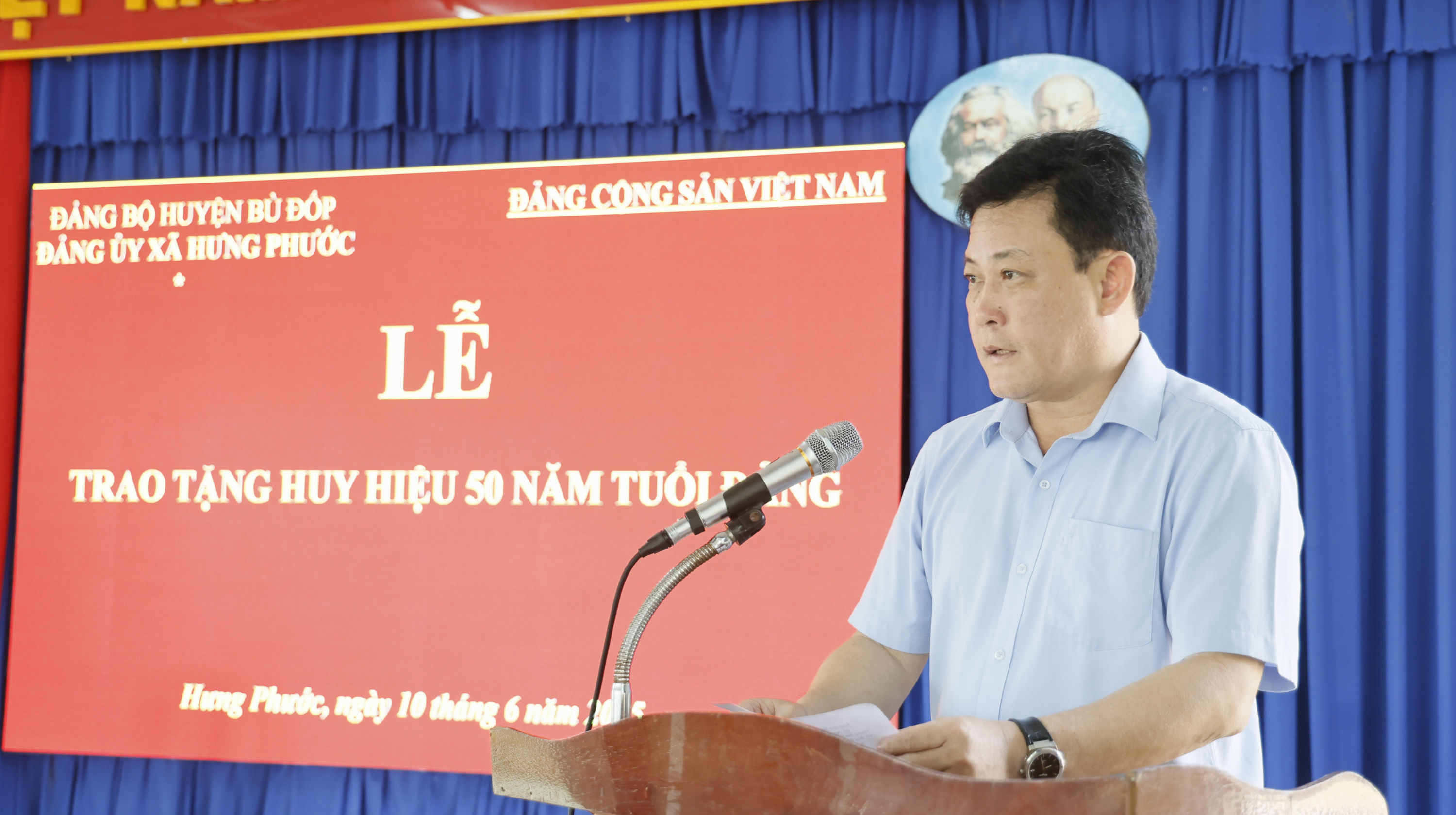 (CTTĐTBP) - Sáng 10/6/2025, Đảng bộ xã Hưng Phước, huyện Bù Đốp đã tổ chức lễ trao tặng huy hiệu 50 năm tuổi đảng cho đảng viên xã Hưng Phước.