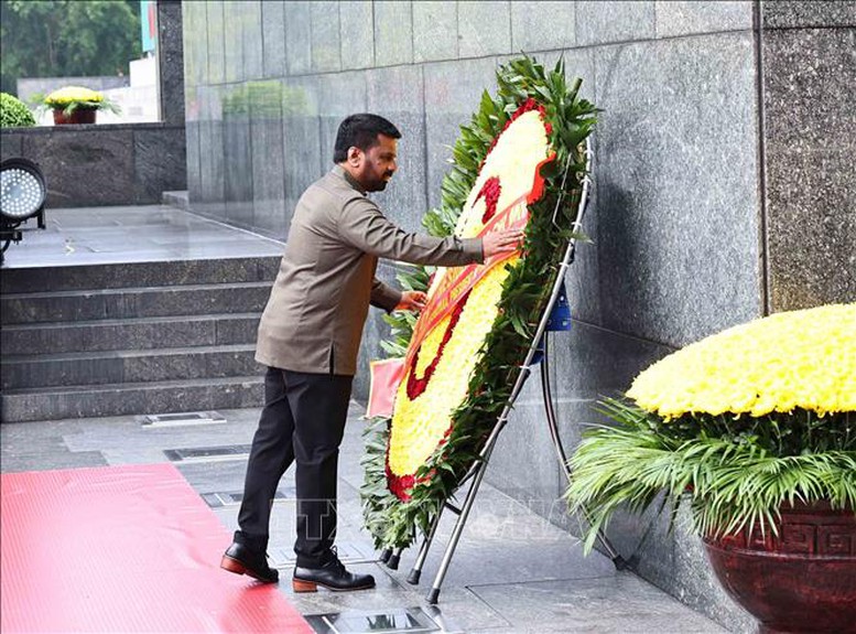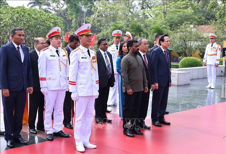 Tổng thống Sri Lanka Anura Kumara Dissanayaka đến đặt vòng hoa và vào Lăng viếng Chủ tịch Hồ Chí Minh. Ảnh: TTXVN