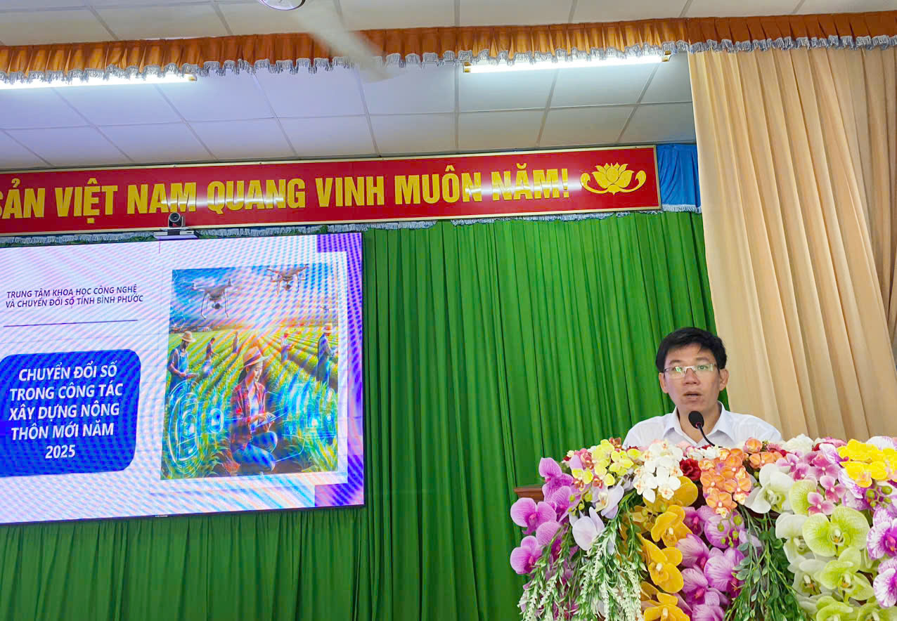 Ông Nguyễn Văn Dự - Phó Giám đốc Trung tâm Khoa học, Công nghệ và Chuyển đổi số thuộc Sở Khoa học và Công nghệ tuyên truyền tại hội nghị