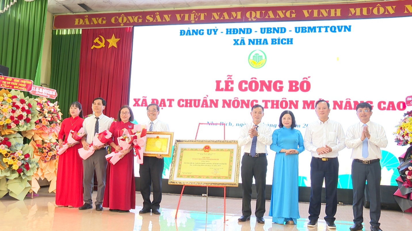 Xã Nha Bích đã đạt chuẩn NTM từ năm 2020. Tiếp đó, Đảng bộ, chính quyền và Nhân dân xã Nha Bích đã bắt tay ngay vào thực hiện phong trào xây dựng NTM nâng cao và khu dân cư nông thôn kiểu mẫu. Kết quả tổng huy động nguồn lực xây dựng NTM nâng cao của xã trong giai đoạn (2021-2024) là hơn 113,6 tỷ đồng. Đến nay, xã Nha Bích đã có 39,7 km đường được trải nhựa, 32,7km đường bê tông xi măng, 10km đường nội đồng được trải sỏi, cứng hóa. Các trường học được đầu tư khang trang, đã đạt tiêu chuẩn quốc gia; có trên 95% người dân tham gia BHYT. Các thiết chế văn hóa được quan tâm xây dựng theo quy chuẩn. Phong trào “Toàn dân đoàn kết xây dựng đời sống văn hóa” được duy trì. Thu nhập bình quân trên đầu người đạt hơn 85 triệu đồng/người/năm. Tình hình an ninh chính trị, trật tự an toàn xã hội được đảm bảo tốt. Đến hết năm 2024, xã Nha Bích đã đạt 20/20 tiêu chí NTM nâng cao.