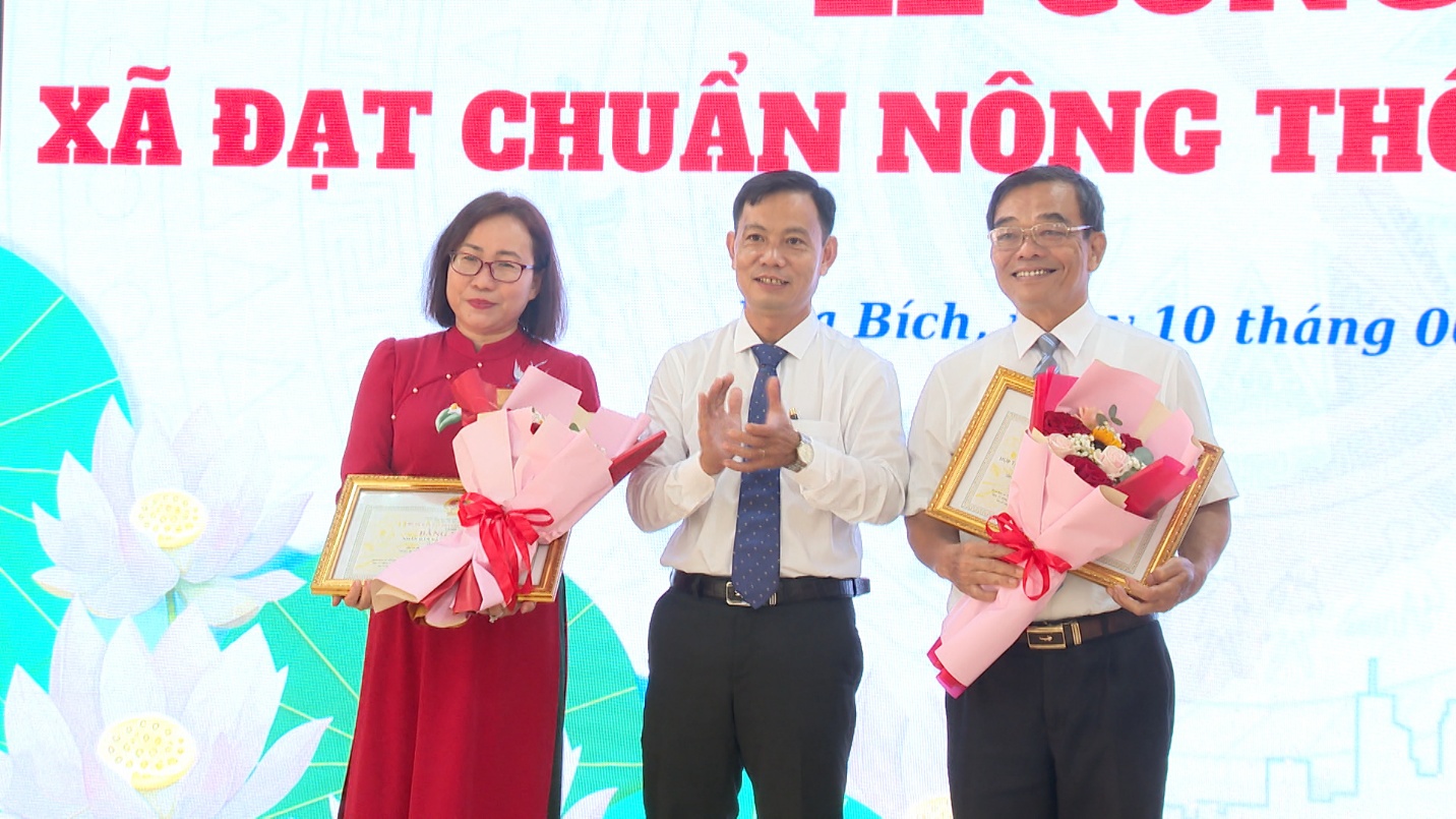 Tại buổi lễ, thừa ủy quyền của Chủ tịch UBND tỉnh, Phó Giám đốc Sở Công Thương Trương Tấn Nhất Linh đã trao bằng công nhận xã Nha Bích đạt chuẩn NTM nâng cao năm 2024.