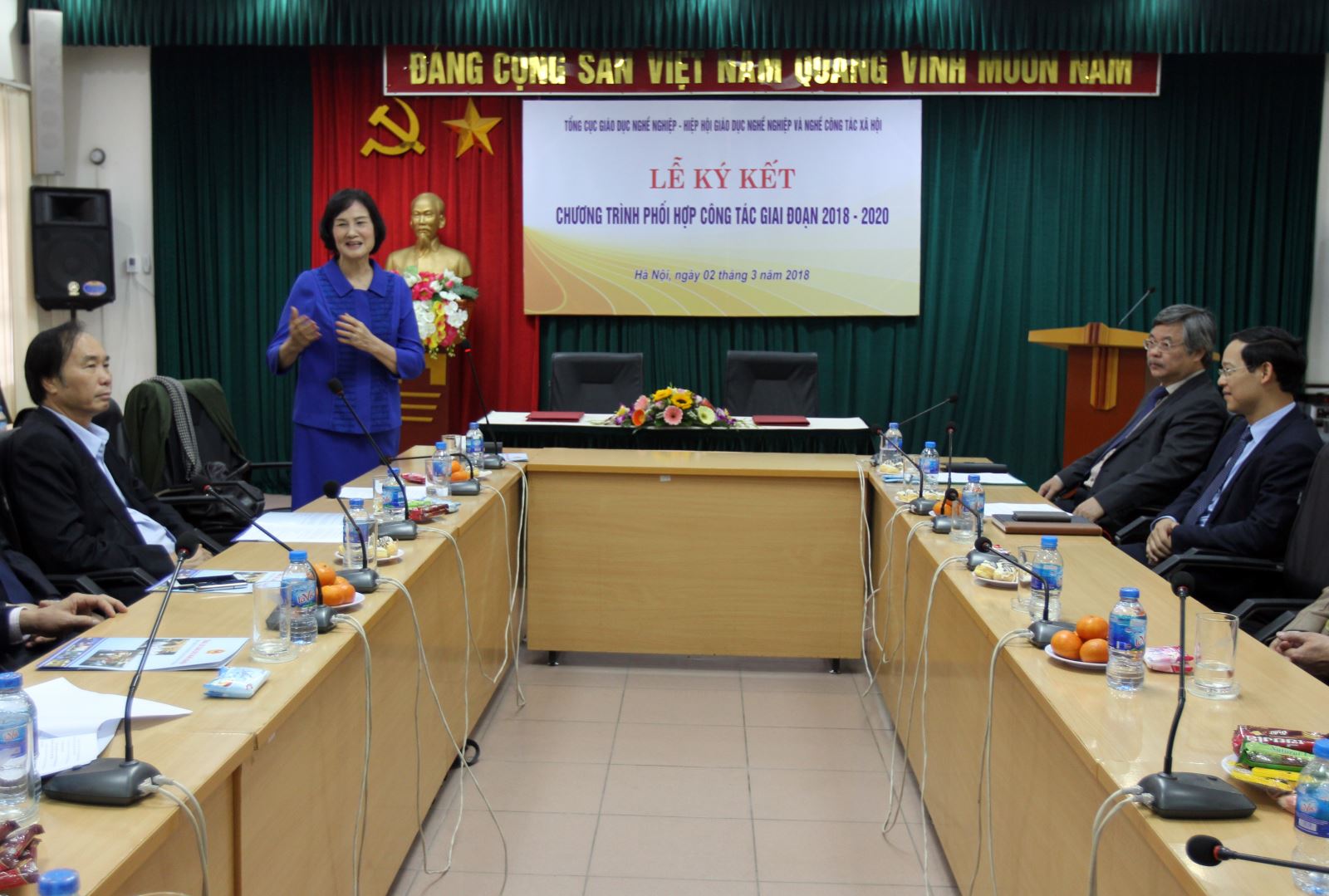 “Trong giai đoạn tới, Tổng cục Giáo dục nghề nghiệp mong muốn việc phối kết hợp giữa Tổng cục và Hiệp hội tiếp tục phát triển bền vững để đưa ra được những giải pháp hữu hiệu nhằm triển khai đồng bộ nhóm các giải pháp cần thực hiện đồng bộ để đổi mới và nâng cao chất lượng giáo dục nghề nghiệp. Trong đó, năm 2018 tập trung để: tiếp tục hoàn thiện hệ thống chính sách, pháp luật về giáo dục nghề nghiệp; Tăng cường đổi mới công tác truyền thông, tuyên truyền nâng cao nhận thức của người dân, xã hội về giáo dục nghề nghiệp, hoàn thành các chỉ tiêu tuyển sinh giáo dục nghề nghiệp năm 2018; Sắp xếp lại mạng lưới cơ sở giáo dục nghề nghiệp; chuẩn bị lộ trình đổi mới, giao quyền tự chủ, tự chịu trách nhiệm cho các cơ sở giáo dục nghề nghiệp; Xây dựng các chuẩn áp dụng trong giáo dục nghề nghiệp;Triển khai ứng dụng công nghệ thông tin trong quản lý của các cơ quan quản lý nhà nước, trong quản lý, đào tạo ở các cơ sở giáo dục nghề nghiệp; Nghiên cứu, đề xuất một số giải pháp phát triển giáo dục nghề nghiệp đáp ứng yêu cầu của cuộc cách mạng công nghiệp 4.0” - TS Nguyễn Hồng Minh nhấn mạnh.