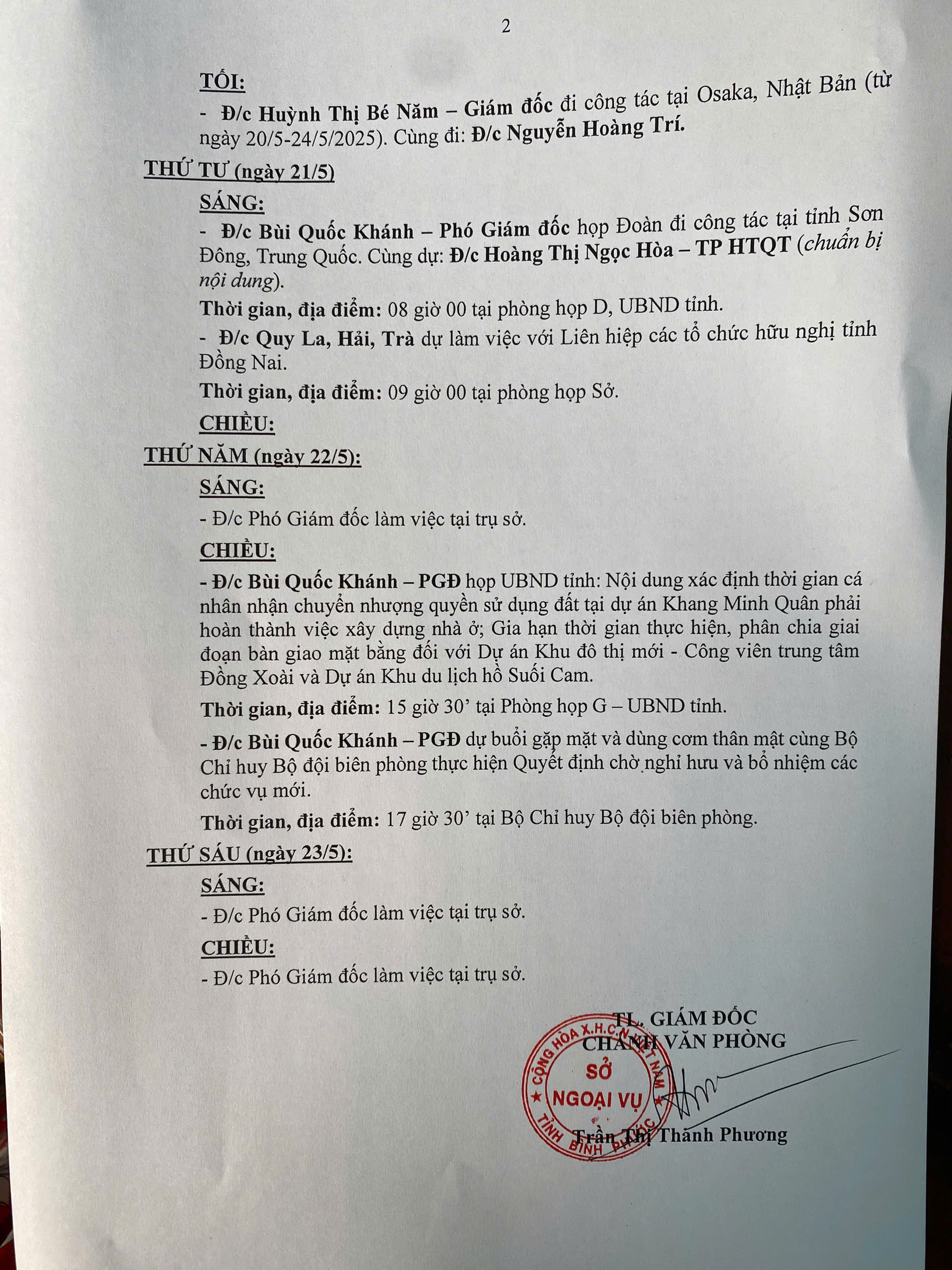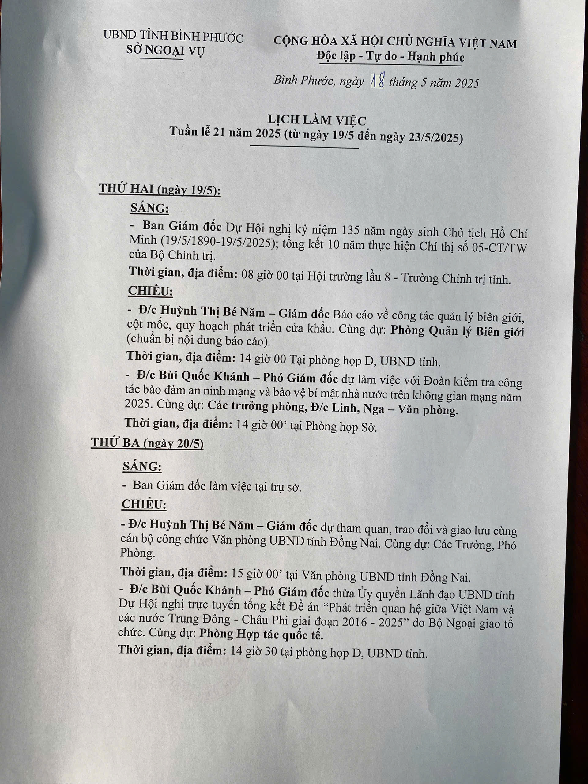 Lịch công tác tuần 20 - Sở Ngoại vụ