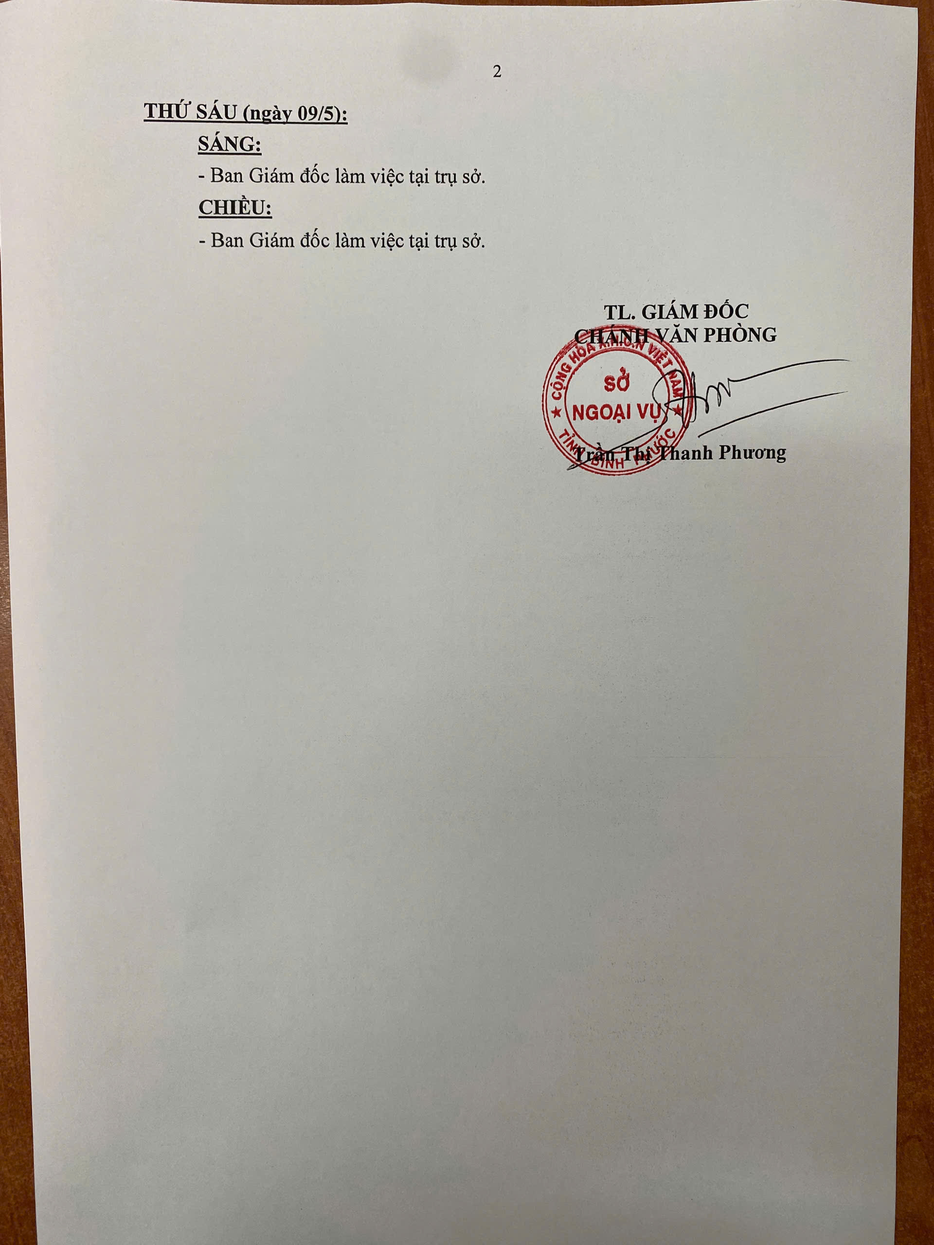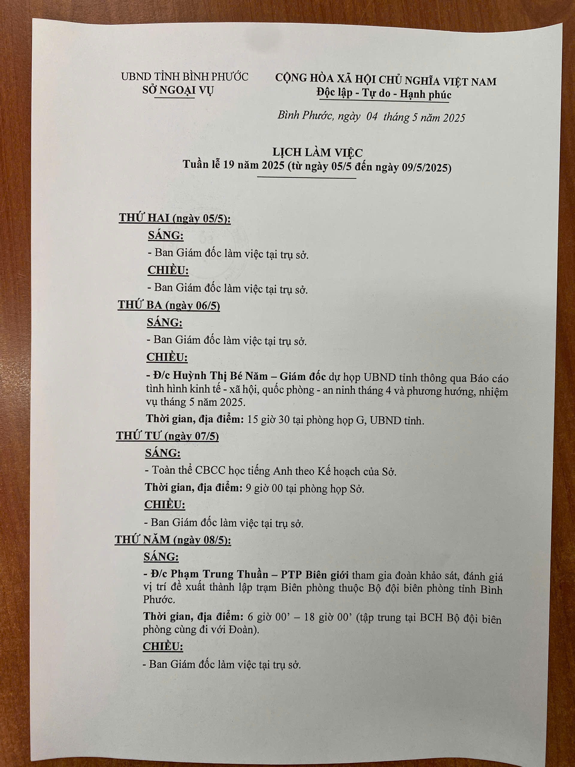 Lịch làm việc tuần 19 - Sở Ngoại vụ