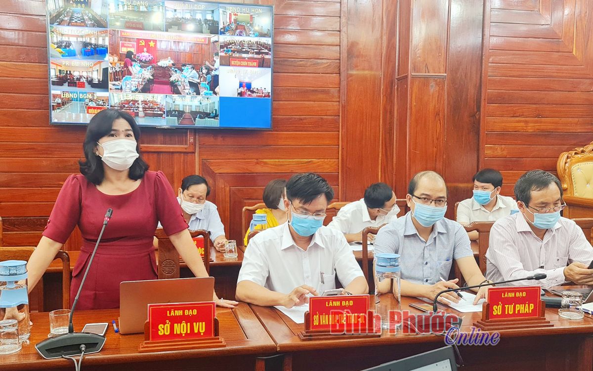 Lãnh đạo Sở Nội vụ trao đổi ý kiến tại cuộc họp. Ảnh: Như Nam