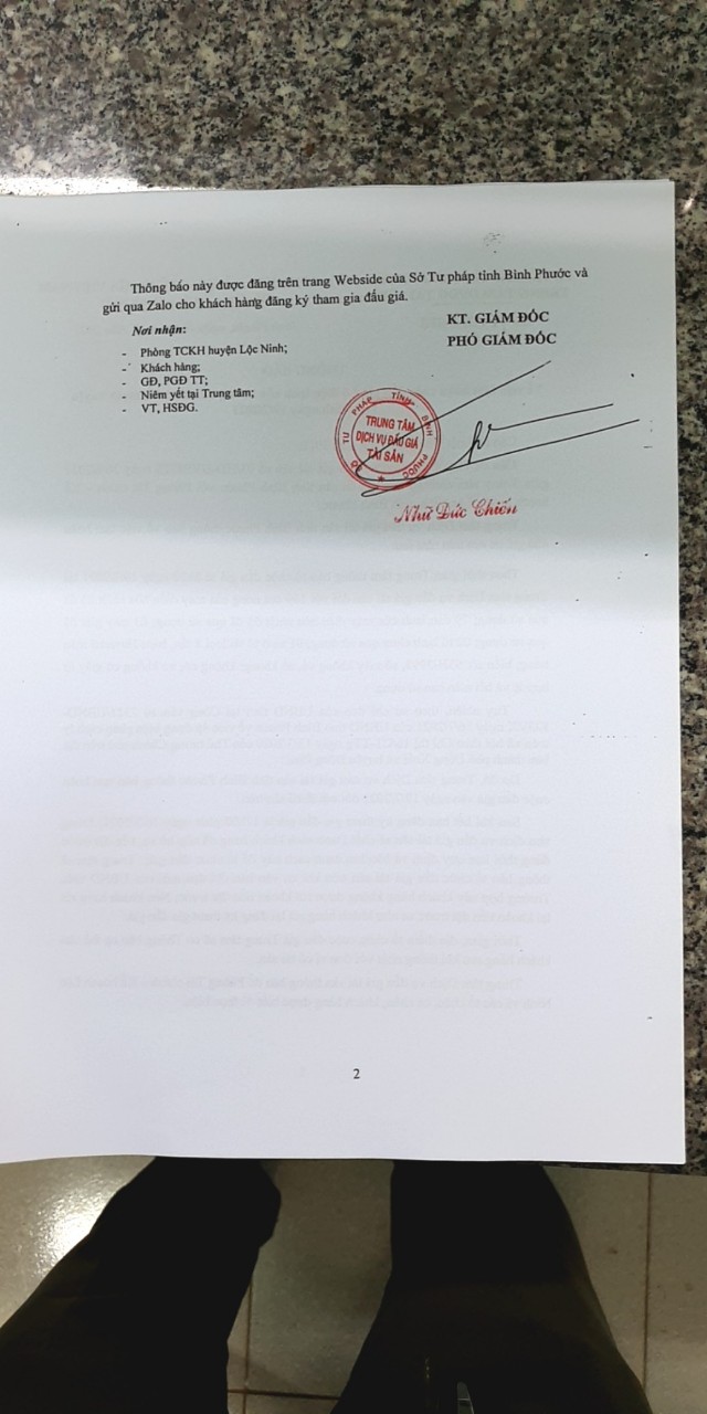 Trung tâm Dịch vụ đấu giá tài sản thông báo để Phòng Tài chính – Kế hoạch Lộc Ninh và các tổ chức, cá nhân, khách hàng được biết để thực hiện.