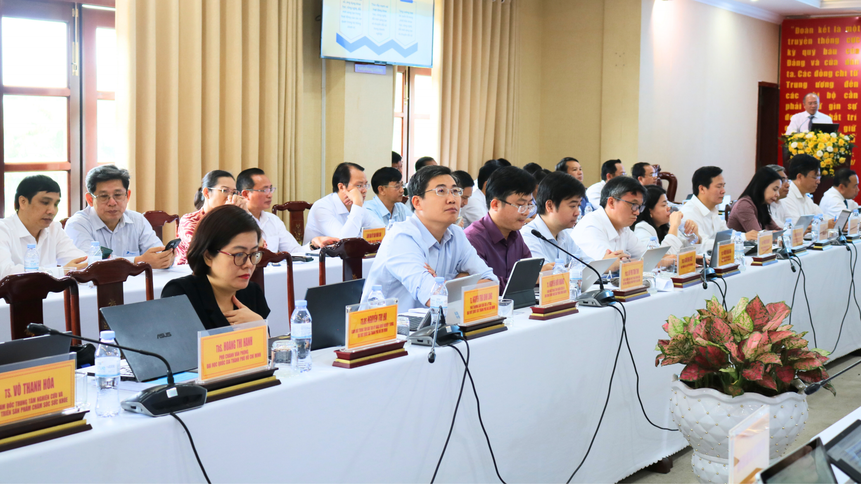 Về phía ĐHQG-HCM có PGS, TS Vũ Hải Quân - Ủy viên Trung ương Đảng, Giám đốc ĐHQG-HCM; lãnh đạo, các ban chức năng, các đơn vị trực thuộc, đơn vị thuộc trường đại học thành viên; các nhà khoa học, chuyên gia trong lĩnh vực khoa học, công nghệ và đổi mới sáng tạo, chuyển đổi số từ ĐHQG-HCM.