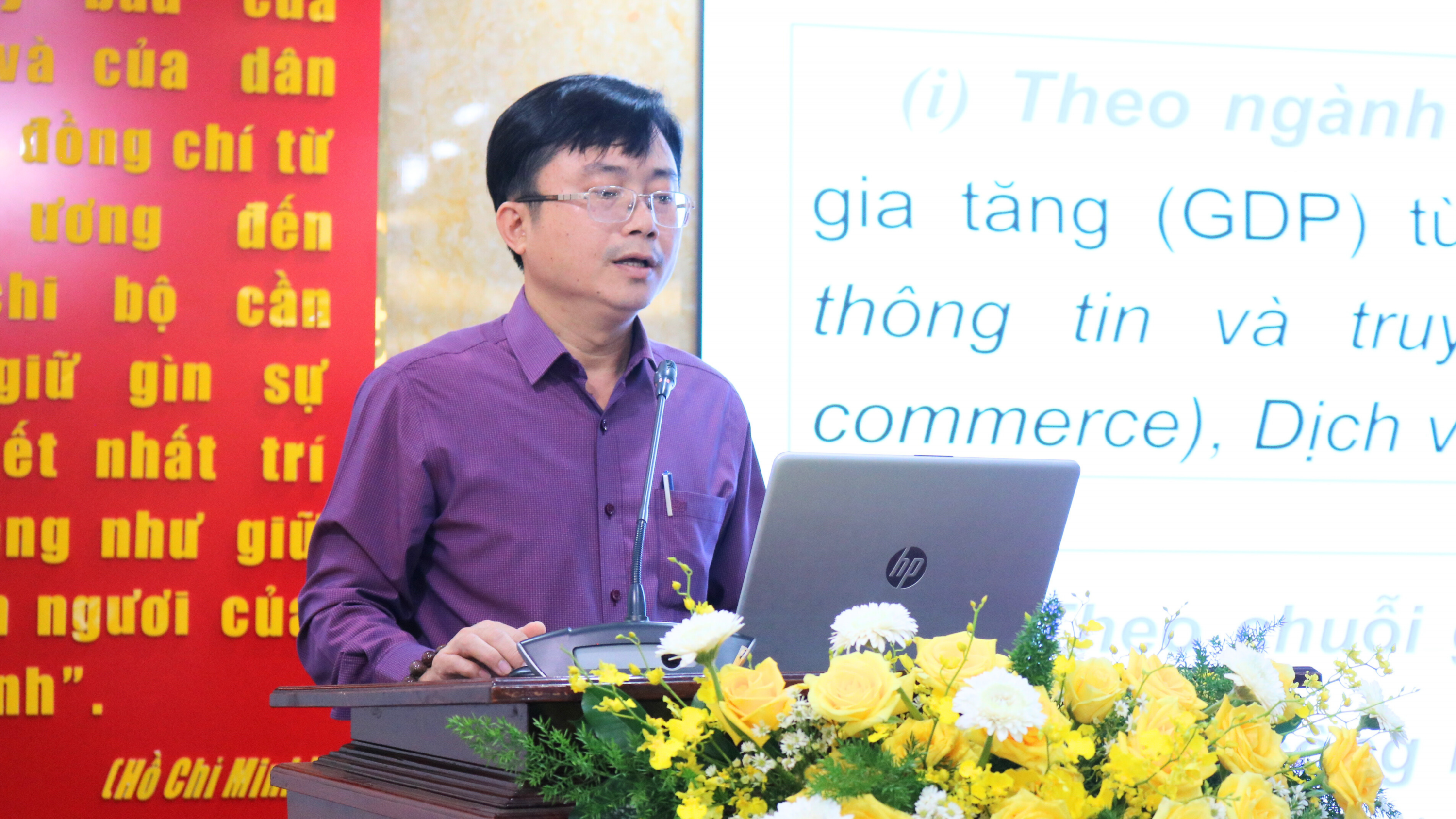 PGS, TS Đỗ Phú Trần Tình - Viện trưởng, Viện Phát triển chính sách ĐHQG-HCM trình bày tham luận: “Một số đề xuất phát triển kinh tế số ở tỉnh Bình Phước”.