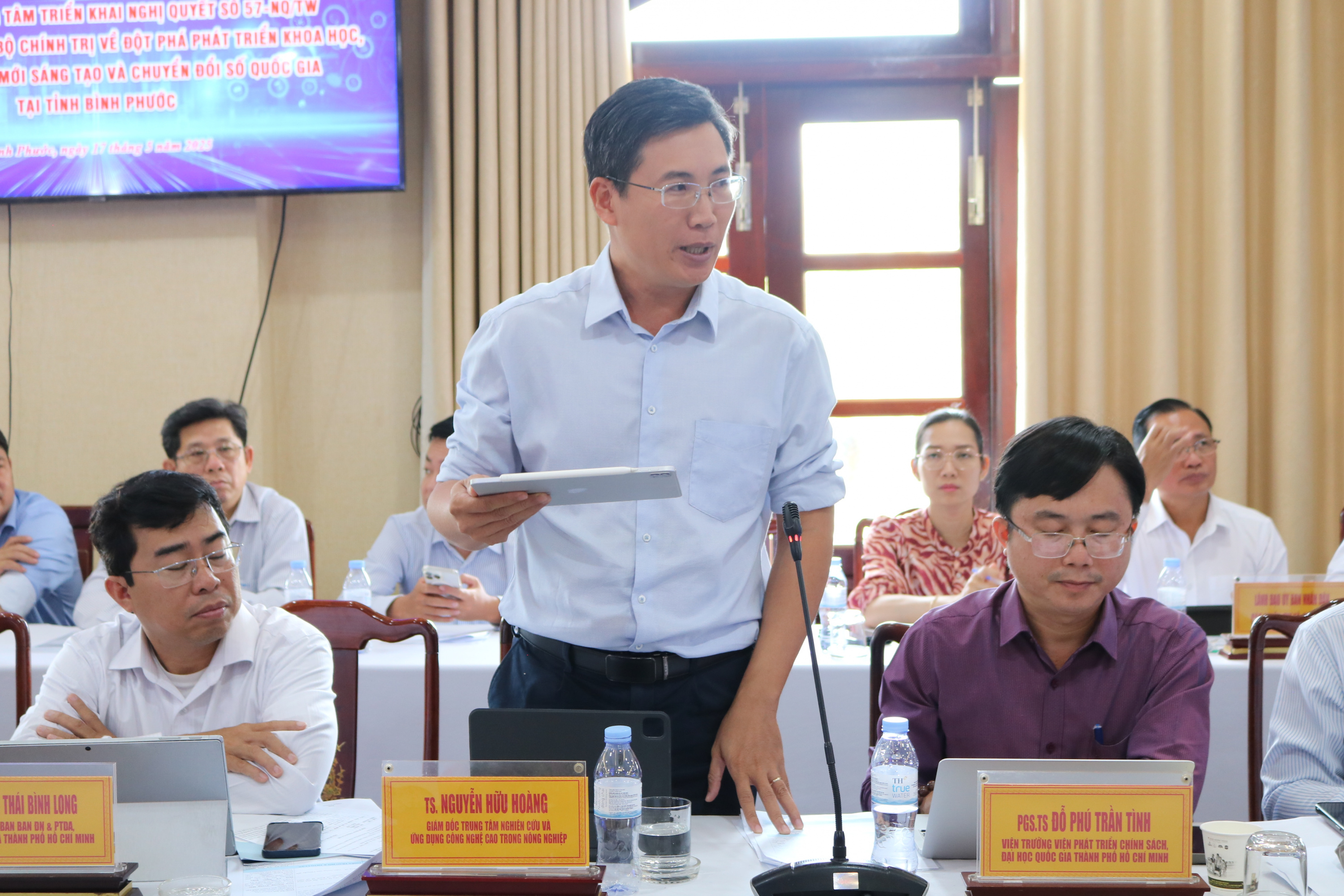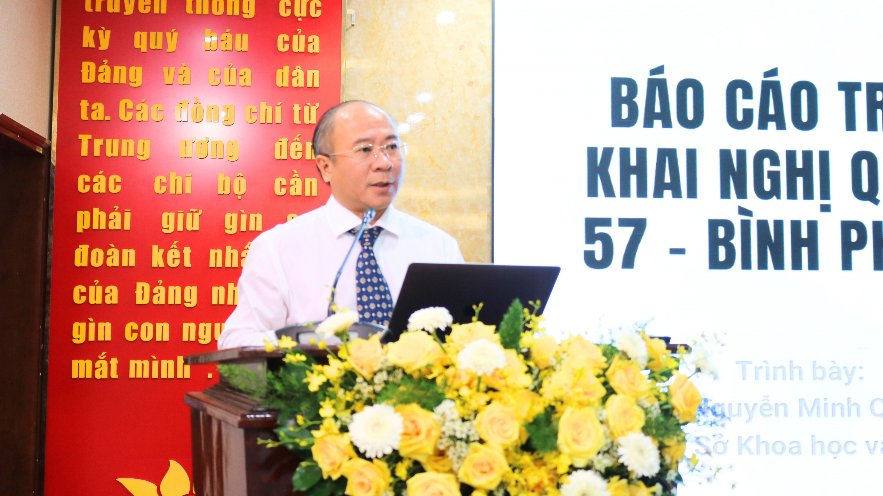 Trong đó, Giám đốc Sở Khoa học và Công nghệ Nguyễn Minh Quang trình bày tổng quan Chương trình hành động số 74-CTr/TU ngày 02/3/2025 của Ban Thường vụ Tỉnh ủy Bình Phước thực hiện Nghị quyết số 57-NQ/TW; Kế hoạch số 163/KH-UBND ngày 09/5/2025 của UBND tỉnh về triển khai thực hiện Chương trình hành động của Chính phủ thực hiện Nghị quyết số 57-NQ/TW ngày 22/12/2024 của Bộ Chính trị về đột phá phát triển khoa học, công nghệ, đổi mới sáng tạo và chuyển đổi số quốc gia.