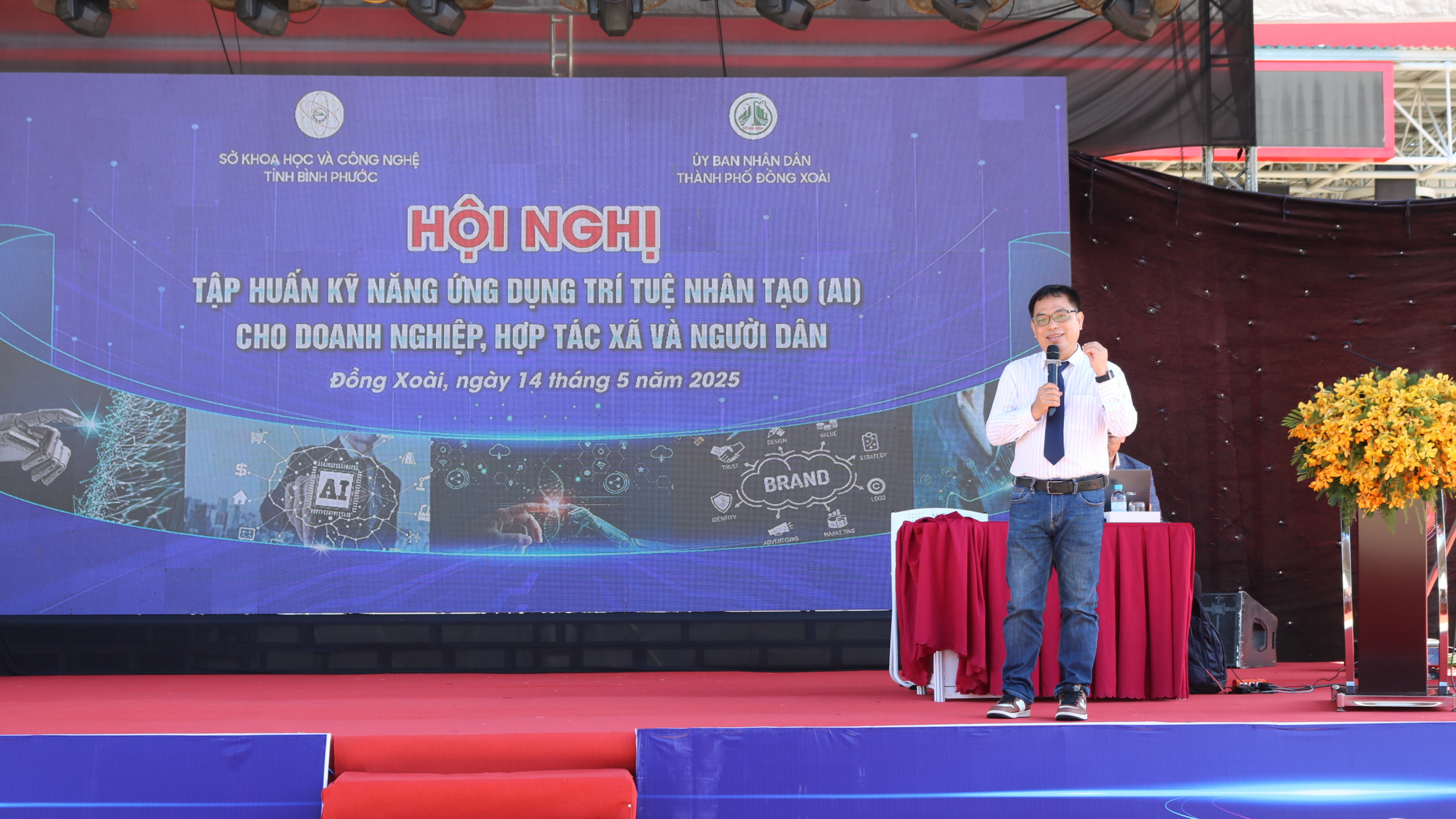 Tiếp nối chuỗi hoạt động của Tuần lễ công nghệ số - Bình Phước 2025, sáng nay 14/5/2025, tại Quảng trường thành phố Đồng Xoài, Sở Khoa học và Công nghệ phối hợp với UBND thành phố Đồng Xoài tổ chức Hội nghị tập huấn kỹ năng ứng dụng trí tuệ nhân tạo (AI) dành cho doanh nghiệp, hợp tác xã và người dân trên địa bàn tỉnh.