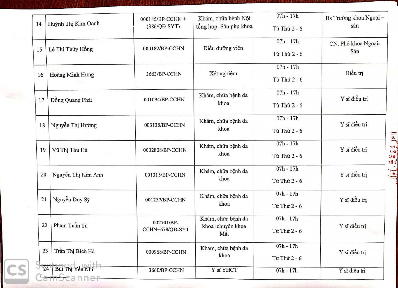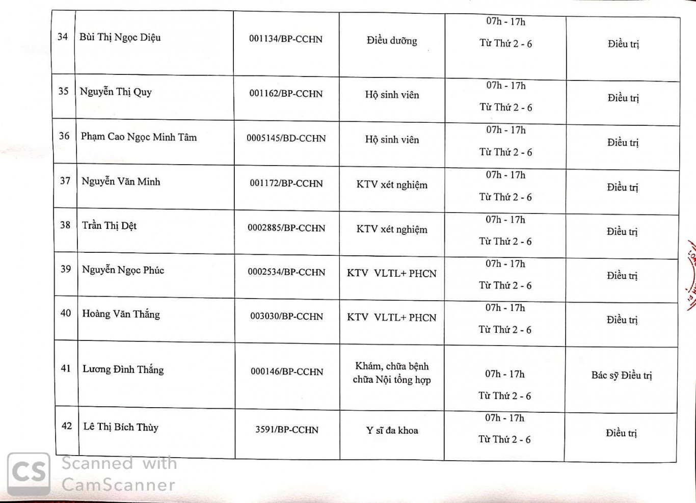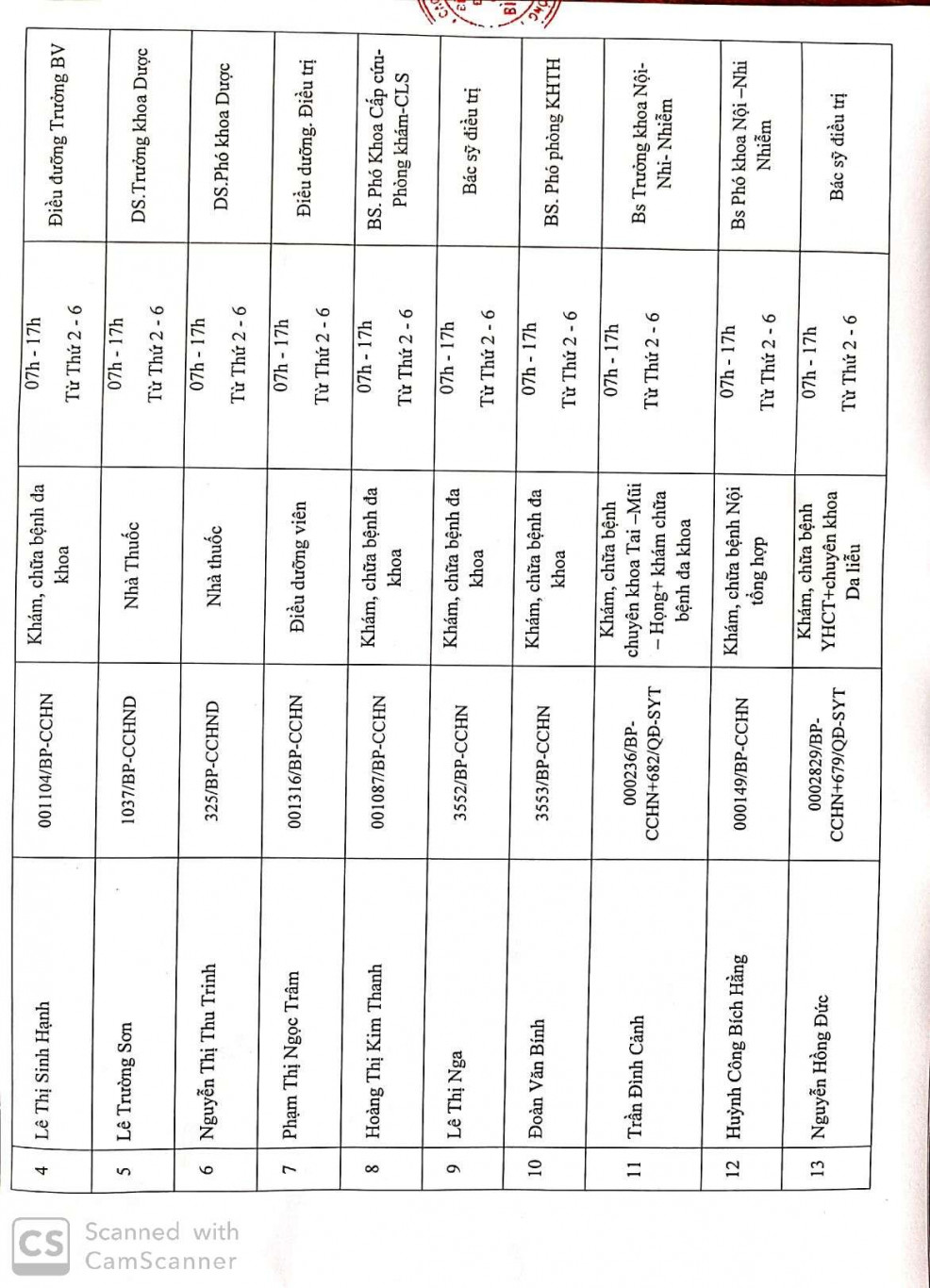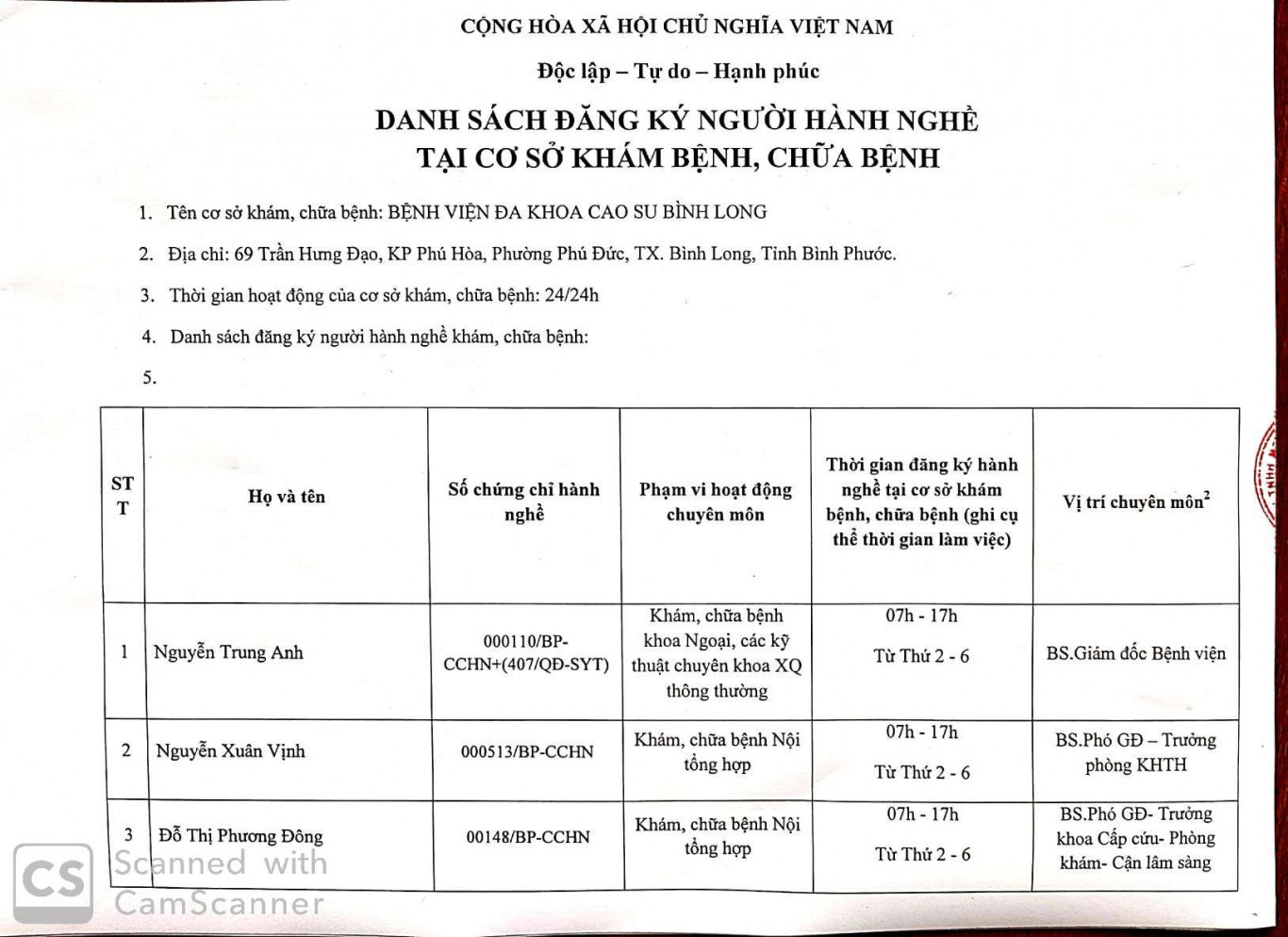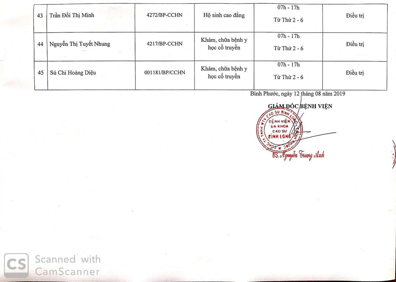 Danh sách hành nghề Bệnh viện đa khoa cao su Bình Long (ngày 13.8.2019)