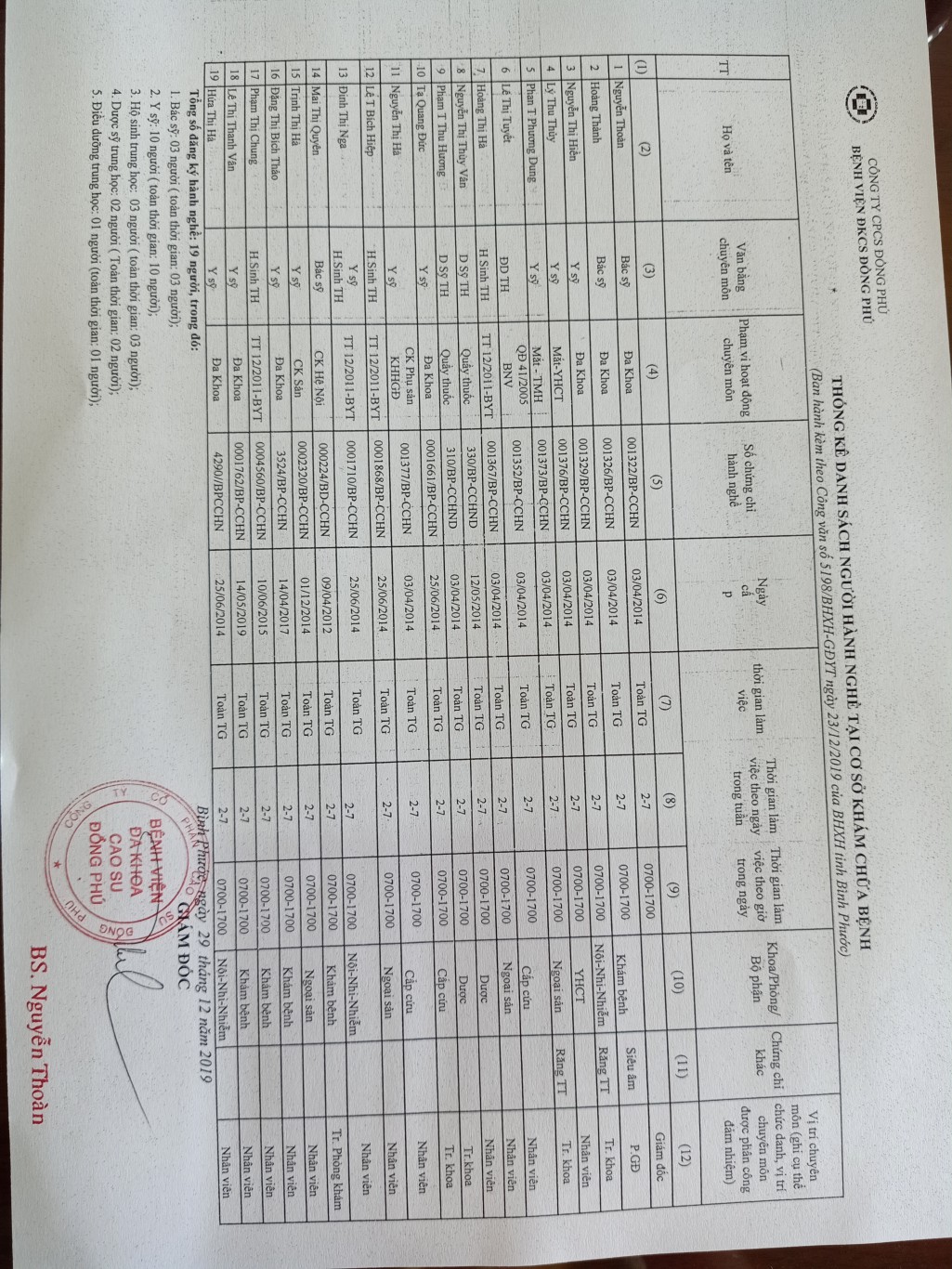 Danh sách hành nghề BVĐK Cao su Đồng Phú (ngày 03/01/2020)